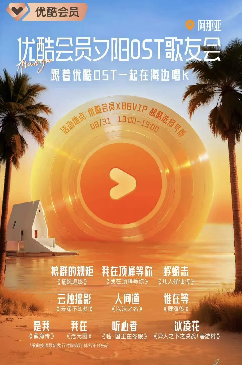 这次官方听到了追剧党的心声,竟然举办了【优酷夕阳OST歌友会】,一共有整整10首热门影视IP的歌曲,在歌友会上会让尊贵的优酷会员们亲自登台演唱,让大家过一把歌手瘾。