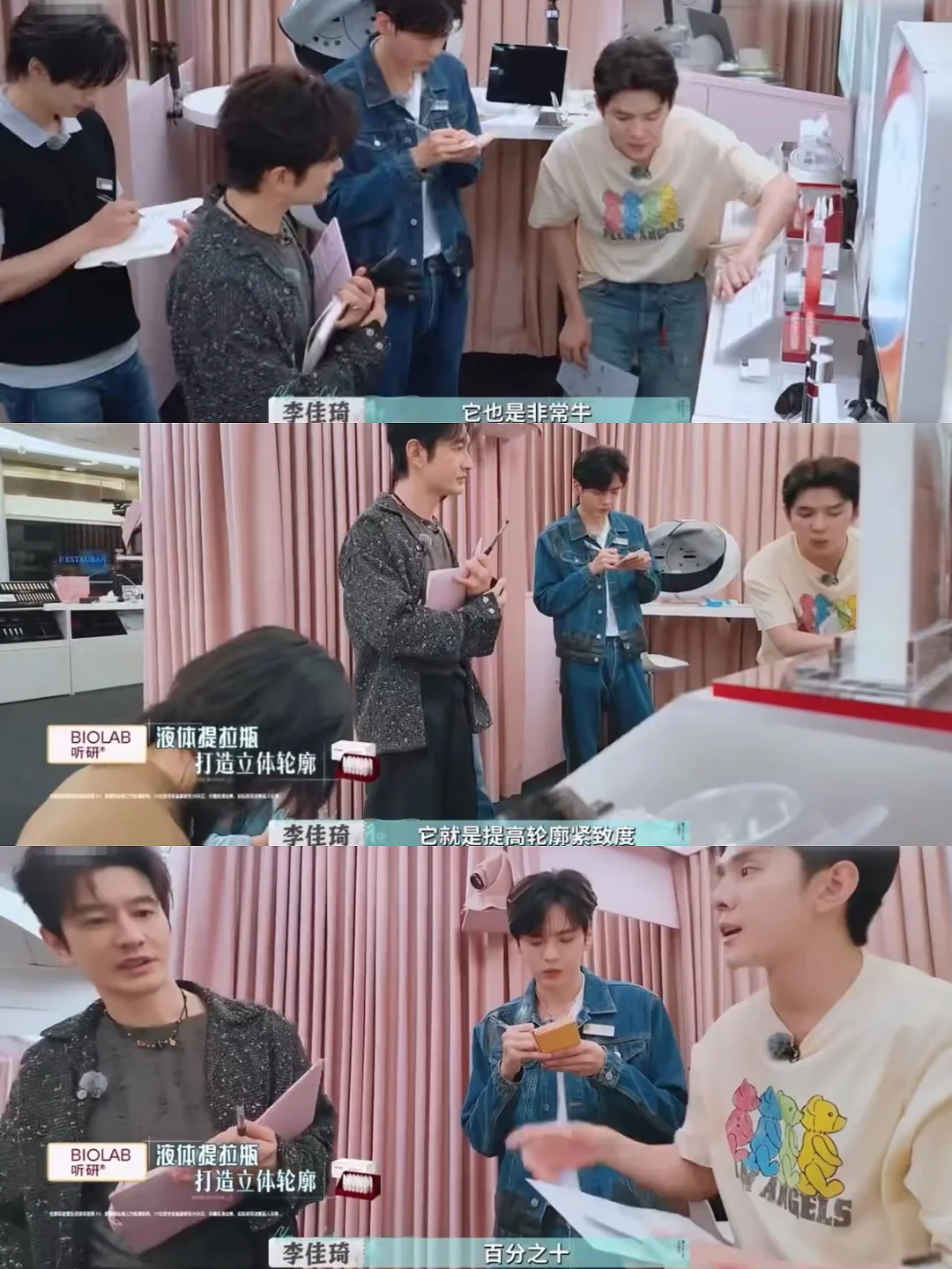 李佳琦在《巴黎合伙人》中的表现再次刷新认知~美妆店还没正式营业,合伙人们自己已经要自掏腰包了,果然谁都抵挡不住国货美妆的魅力~ · 在结束营业之后,合伙人们让李佳琦现场讲解每个产品,以便正式营业后更细致入微地展示给顾客。李佳琦秒切“直播状态”,从成分、功效到使用技巧深度剖析,语言既专业又通俗。 · 讲产品的时候状态真好,热情满满又细致,把每个产品都讲得让人想拥有。黄晓明越听越想买,赵昭仪也说购物车加好了~张予曦、颜安也同步表示要下单,国货美妆这波属实拿捏了!