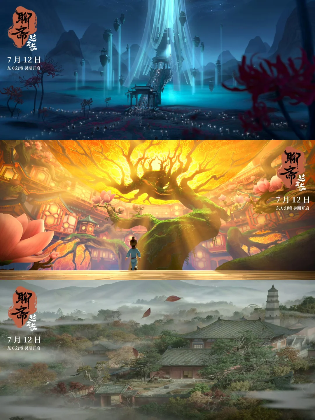 ❗️用到了很多动画技术,从简到复杂建模:崂山道士的故事,人物是毛毡设计,莲花公主有点现代童话的画风感受。从聂小倩开始回归到我们熟悉的追光给人的感受,可参考白蛇系列。