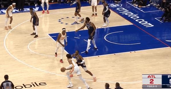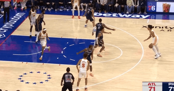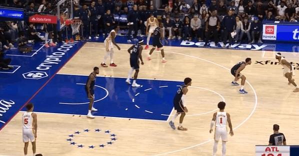 老鹰观察:杰伦-约翰逊41+14+7,鏖战双加时率队取胜图1和戴森边路的“Touch Screen”配合,戴森抓换防的“时间差”抢出身位优势后,JJ非常漂亮的击地球领人。图2和奥孔古的边路挡拆配合,佯装走掩护墙一侧实则在过掩护的瞬间转身换到右手拒绝掩护,摆脱马克西后面对换防的恩比德炸球横撤步中投。图3前场快攻多打一,接亚历山大沃克精彩的背后传球,单臂战斧劈扣。图4里萨谢边路遭遇夹击,约翰逊Slot空切接应,内线接球后吸引两人防守注意力再找到Slot空切接应自己的戴森。图5推过半场后抓早期进攻、费城阵地防守立足未稳,“跳步犹豫”启动左路突破直杀篮下,沉肩对抗后合球起步左手终结。图6弧顶佯装一对一单打巴洛吸引防守注意力后,直接找到左侧借助戴森无球掩护兜出,抓乔治、马克西换防的时间差获得投篮空接的沃克。图7见沃克单打格莱姆斯没能摆脱即将死球之时,立即抓巴洛盯无球走神Slot空切接应,接球后迎着篮下协防的乔治直接沉肩对抗顶开后左手终结打进。图8奥孔古持球突破直杀篮下吸引弱侧底角巴洛回收协防,JJ接球后回应空位三分,命中关键进球,122-121比分反超。图9持球刚过半场立即抓早期进攻开展和奥孔古的“Touch Screen”配合,沃克在挡拆行进间的空手移动上提造成费城弱侧防守沟通失误,JJ转身之后立即找到底角空切的戴森。图10沃克与奥孔古强侧挡拆配合吸引巴洛回收协防,JJ上提接应三分命中惩罚防守,135-132。图11奥孔古高位拿球“Keep”直杀篮下,JJ立即空手移动至底角为其拉开空间,马克西则选择封堵奥孔古突破路线,底角JJ接球回应空位,本场比赛JJ在加时赛接连命中关键三分,这球打进后老鹰138-132奠定了最终胜利的基调。老鹰双加时战胜76人