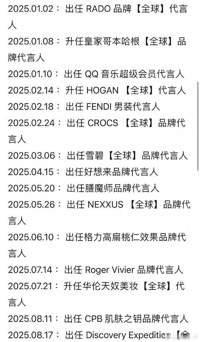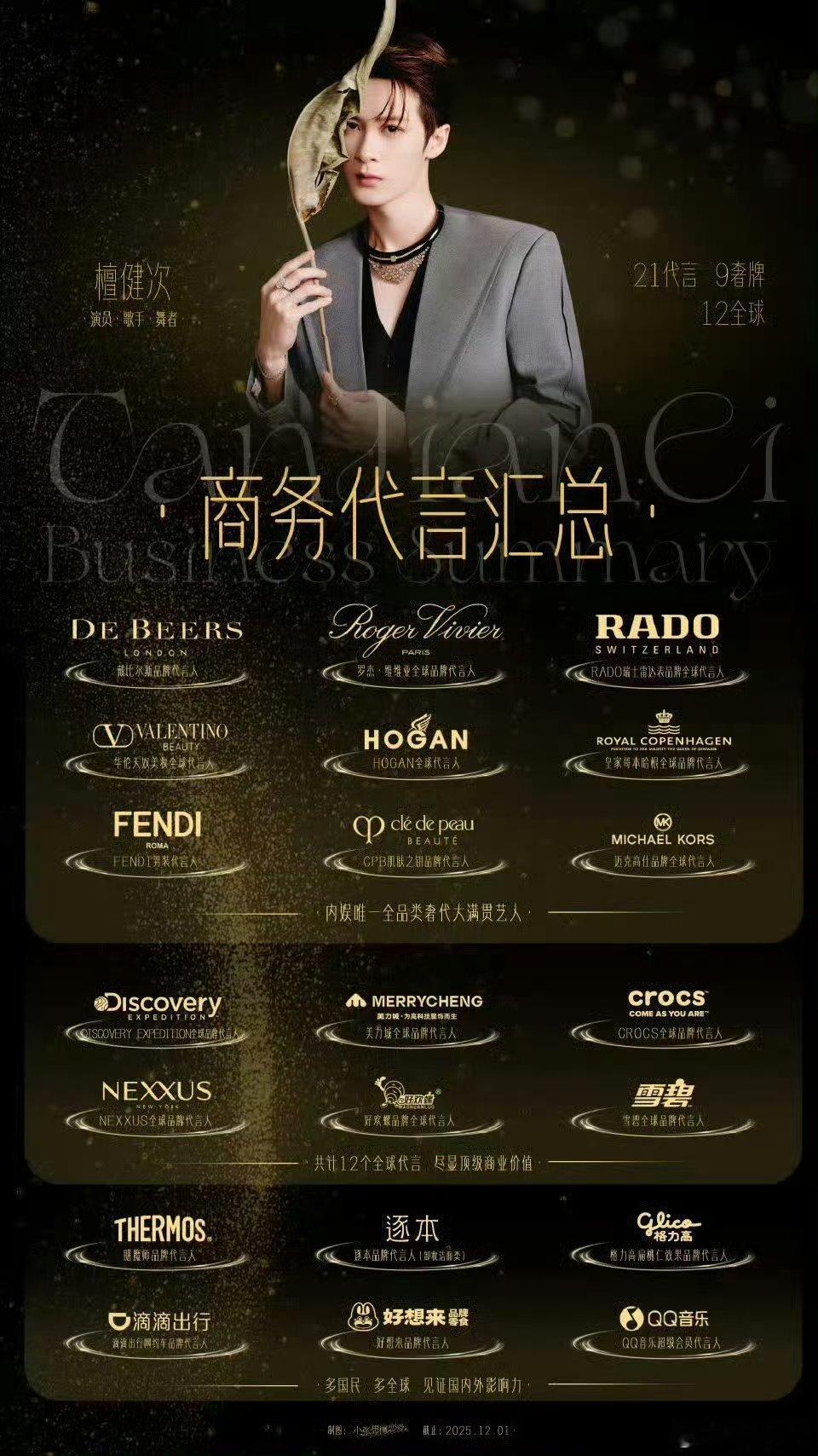 檀健次2025商务汇总檀健次2025商务版图再扩容!全年拿下18个品牌代言,含12个全球头衔,商业价值持续飙升。