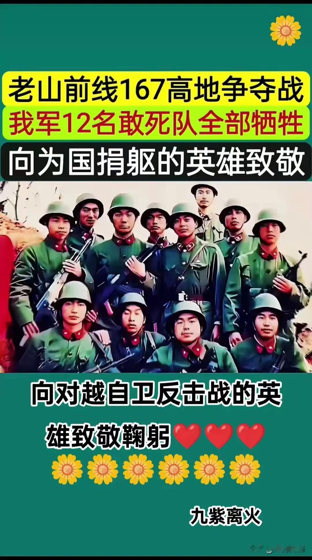 参加自卫反击战的这些英雄们,是我从小就非常崇拜的偶像,他们的英雄事迹,应该永远的宣传下去,当年的这些英雄们,有些人在年纪轻轻的时候,就壮烈牺牲了,比如任泉伟烈士,牺牲的时候才20岁,看到他88岁的老父亲来看望他的画面,泪水禁不住就流淌出来,永远不要忘记这些英雄!