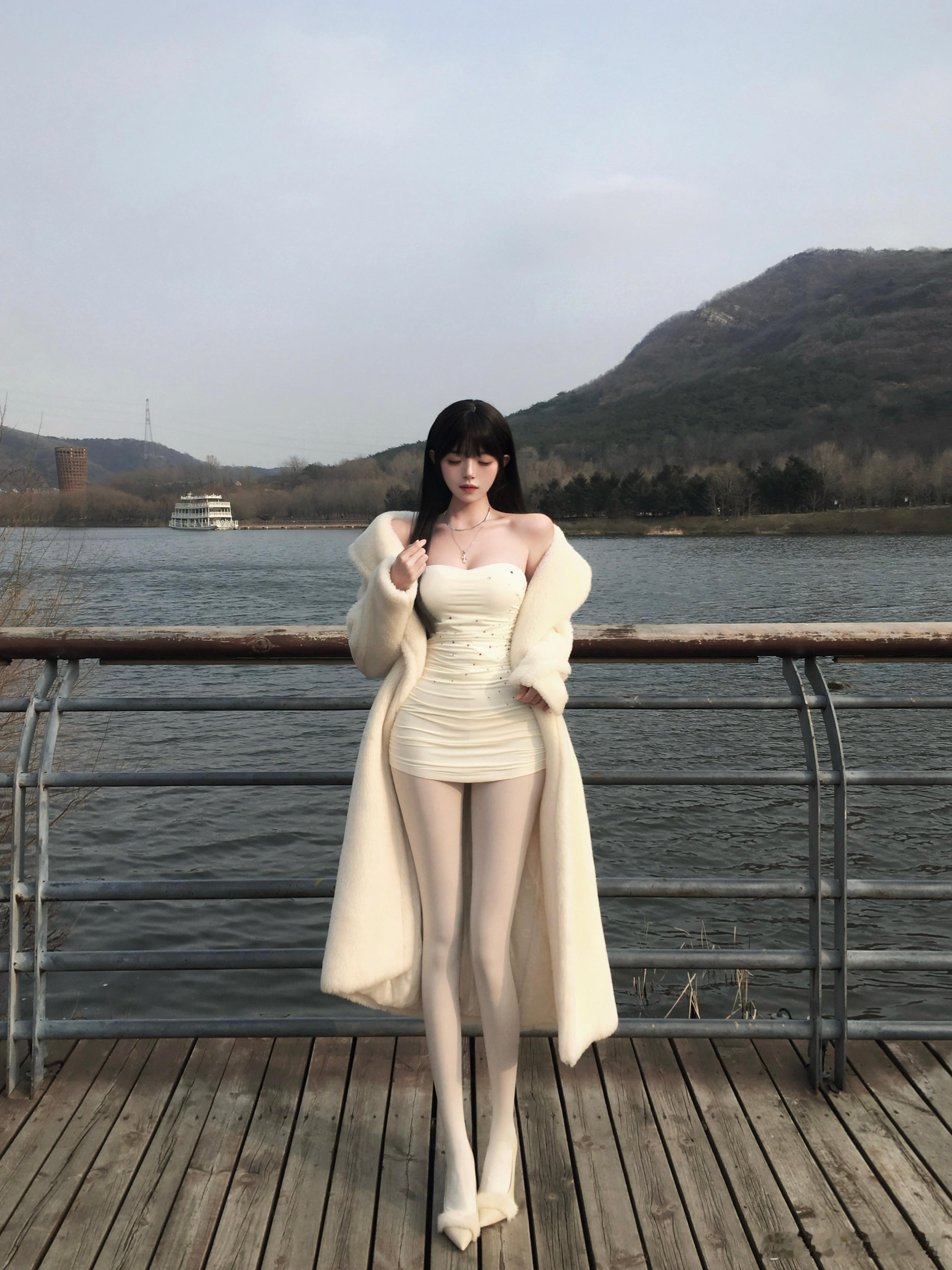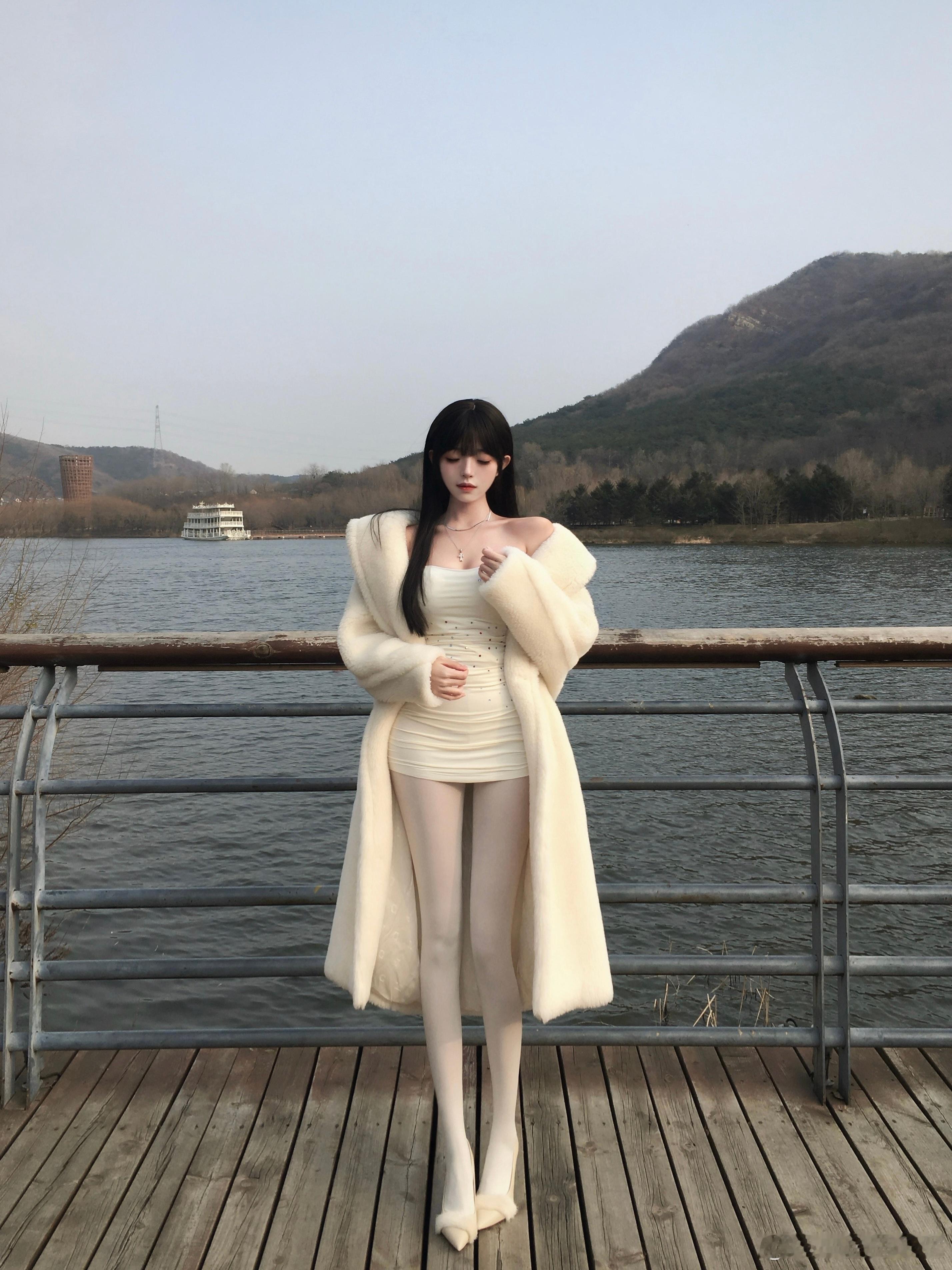 少女摄影|NO.0128期温柔系少女冬日氛围感OOTD米白毛绒外套+浅粉