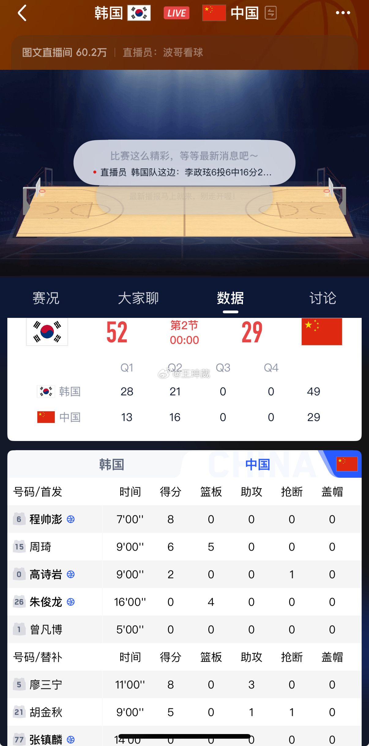 中国男篮vs韩国男篮半场29分,中韩一边倒的局势,居然被对手打懵了,这种局面完全看不懂,没有斗志的比赛,不如给其他人机会试一试。中国男篮半场落后韩国男篮23分中国男篮半场三分球12投1中