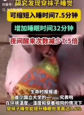 研究发现穿着袜子睡觉可以缩短入睡时间7.5分钟,增加睡眠时间32分钟。夜间醒来次数减少7.5倍。 说实话穿袜子睡觉很多人都不习惯,总感觉多了点什么,穿袜子确实是可以起到保暖的作用,让脚不受凉。 对此你们怎么看呢?有没有这种感觉呢?