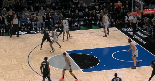 森林狼观察:兰德尔的传控进步,对阵马刺送出12记助攻由于康利的老化,森林狼在本赛季继续了上赛季就尝试过的阵容调整,也就是迪文代替康利出任首发。兰德尔在本赛季也接过了更多的组织任务,延续住了上赛季全明星后传控表现进步表现的情况下,还有更上一层楼的趋势:控球时间和前场触球次数有所增加,每36分钟6.4次助攻生涯新高,助失比2.2生涯断档最高。目前为止展现出了实打实的传控进步与打出传控大年的趋势。今天对阵马刺的比赛中,兰德尔送出了12记助攻,且只有1次失误。本赛季他出战的20场比赛中已经有13场比赛助攻5+,3场比赛助攻10+。图1森林狼会给兰德尔安排高位发牌戏份,比如这个回合兰德尔站右侧45°给借助戈贝尔“拉链掩护”(Zip Screen)兜出的杰登上球。图2底角接球晃飞瓦塞尔后突破杀入禁区,起跳点起科内特后在空中和戈贝尔进行精彩的内传内配合。图3双内之间的配合,高位做肘和里德发动的“Chicago Action”配合。图4炸球启动右路突破衔接转身进一步接近篮下吸引奥利尼克回收协防,随后找到底角被放空的克拉克。图5“幽灵掩护”(Ghost Screen)起手接球后突破直杀篮下吸引哈珀上前夹击,随后立即回给底角空位的迪文。图6与开头第一个回合同理,高位拿球担任“发牌员”的角色,给借助无球掩护兜出的队友上球。图7高位拿球发牌,兰德尔阅读到了同侧的福克斯防守站位靠上,给底角的杰登留出了沿底线右路突破的“突破路径”,于是这个回合兰德尔没有按照原本战术设计等待左侧队友无球执行战术,而是直接找到底角的杰登,让其攻击福克斯的防守。图8“神之一手”:单打巴恩斯被逼停球后佯装要传给外线被放空的杰登,同时骗过瓦塞尔和福克斯,实则找到幽灵区游弋的迪文。图9肘区背打KJ吸引科内特上前夹击后立即回给弱侧接应的杰登。森林狼战胜马刺
