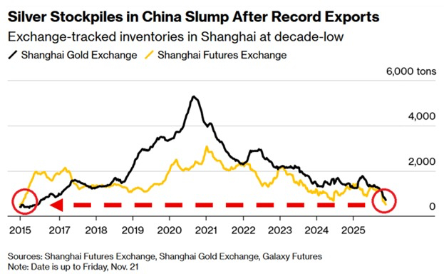与上海期货交易所相关的仓库中的白银库存已降至715,为2016年7月以来的最低水