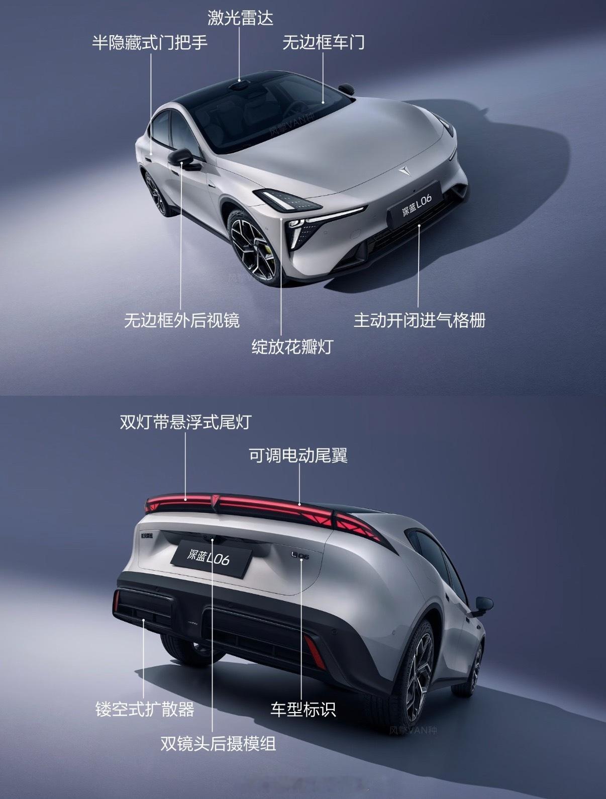 深蓝全新中型轿车深蓝L06 设计好漂亮😍来看下外观配色直观对比预售价:13.99~16.19万元新车基于“共生美学”造型融合科技与自然,花瓣灯、溜背式车身等设计,辨识度与运动感拉满,无边框外后视镜、半隐藏式机械门把手、镂空式扩散器、双灯带悬浮尾灯等设计元素也都有,电车颜值第一梯队吧感觉月辉白和流光银会是主流选择,显大又耐看,不过我还是更喜欢紫色,你们呢