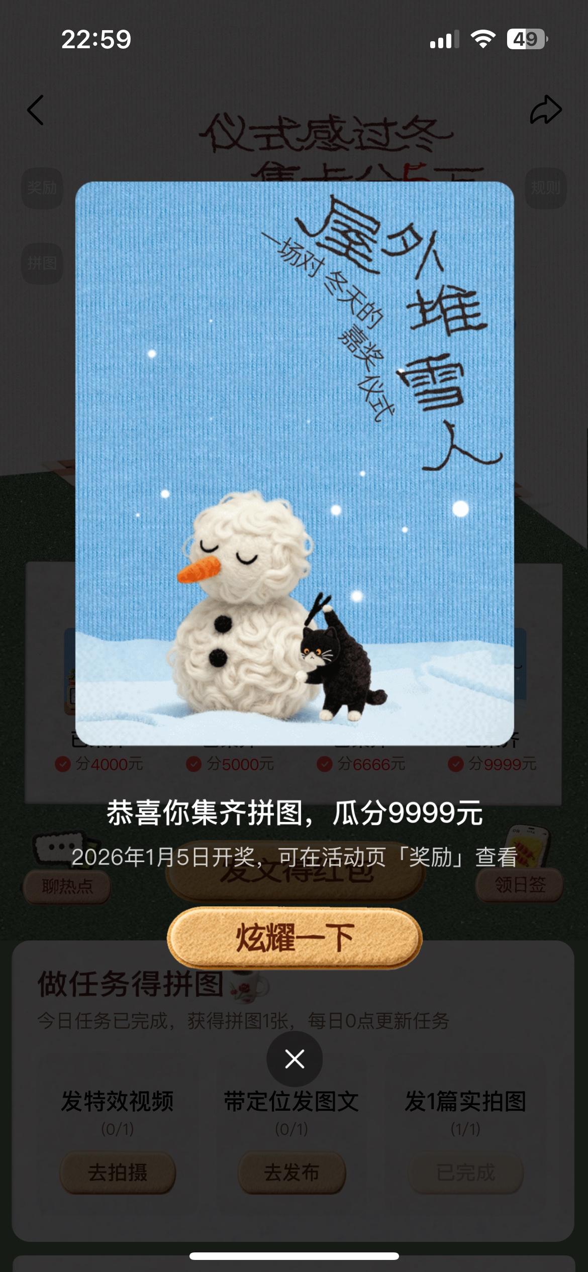 恭喜自己一下, 冬日生活打卡季的活动都集齐拼图了, 挺不容易,每晚等到现在才有时
