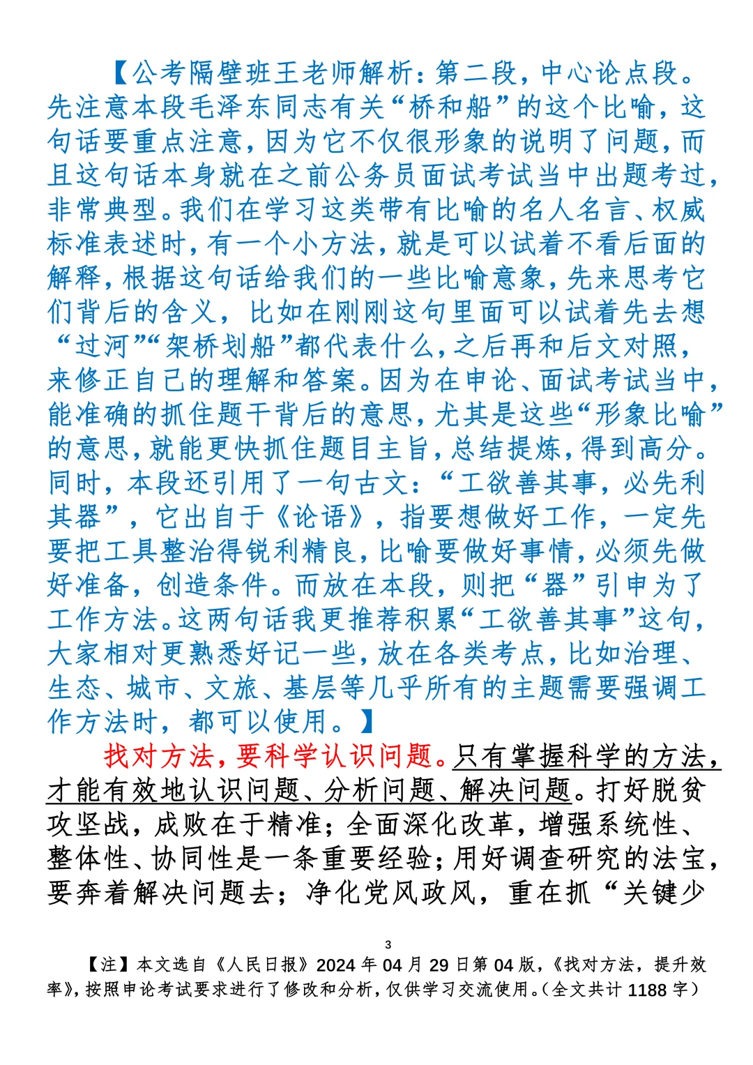 如何抄写:每日抄写文章发在“公考隔壁班王老师”账号,红色字是重点句和结构句,黑色字是正文,蓝色字是解析,大家抄写时不必抄蓝色字。建议先通读全文,做到心中有数再开始抄写,效果会更好。 关于文章:抄写文章来源于人民日报,但每篇文章我都根据申论考试要求进行了修改:一是重写或修改开头、结尾;二是统一段首句句式结构;三是调整段落字数,使文章结构更均衡;四是简化复杂长难句,使之更具可模仿性。每篇文章无论修改多少,都是基于申论考试要求,毫无对人民日报文章品评之意。(此处致敬人民日报)