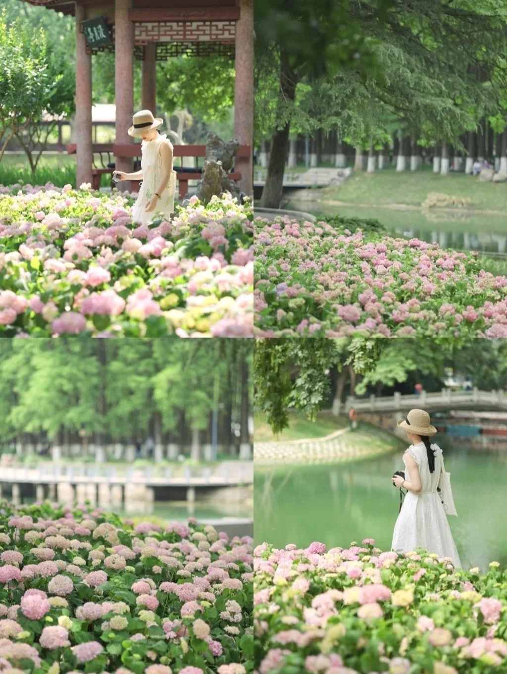 ✔️武汉最爱的公园,晴天雨天都好看,现在有一片绣球,公园的绿色也很美,可以喂鸽子