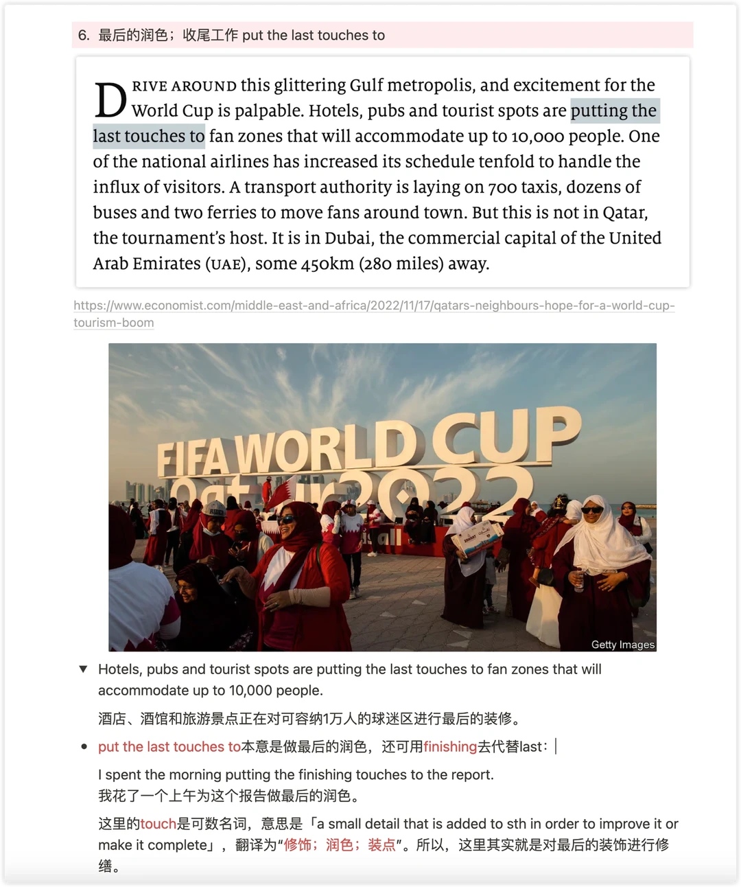 put the last touches to本意是做最后的润色,还可用finishing去代替last:
