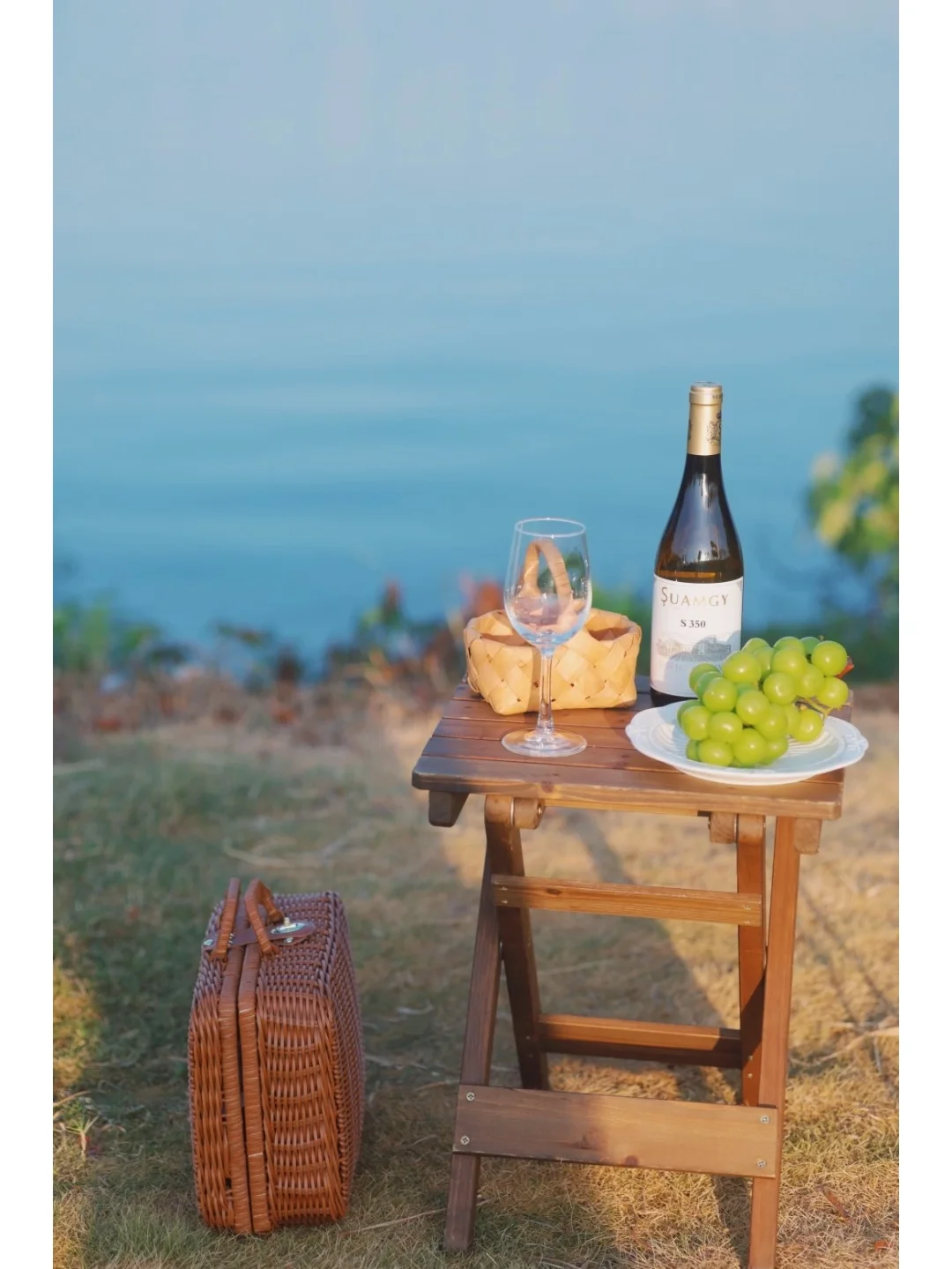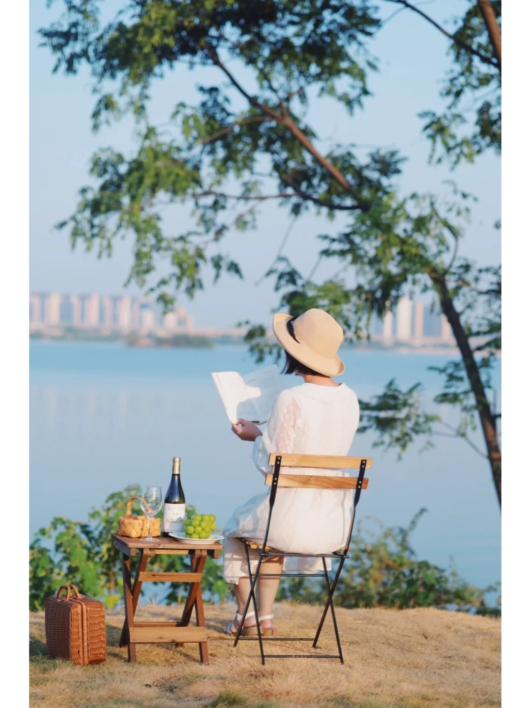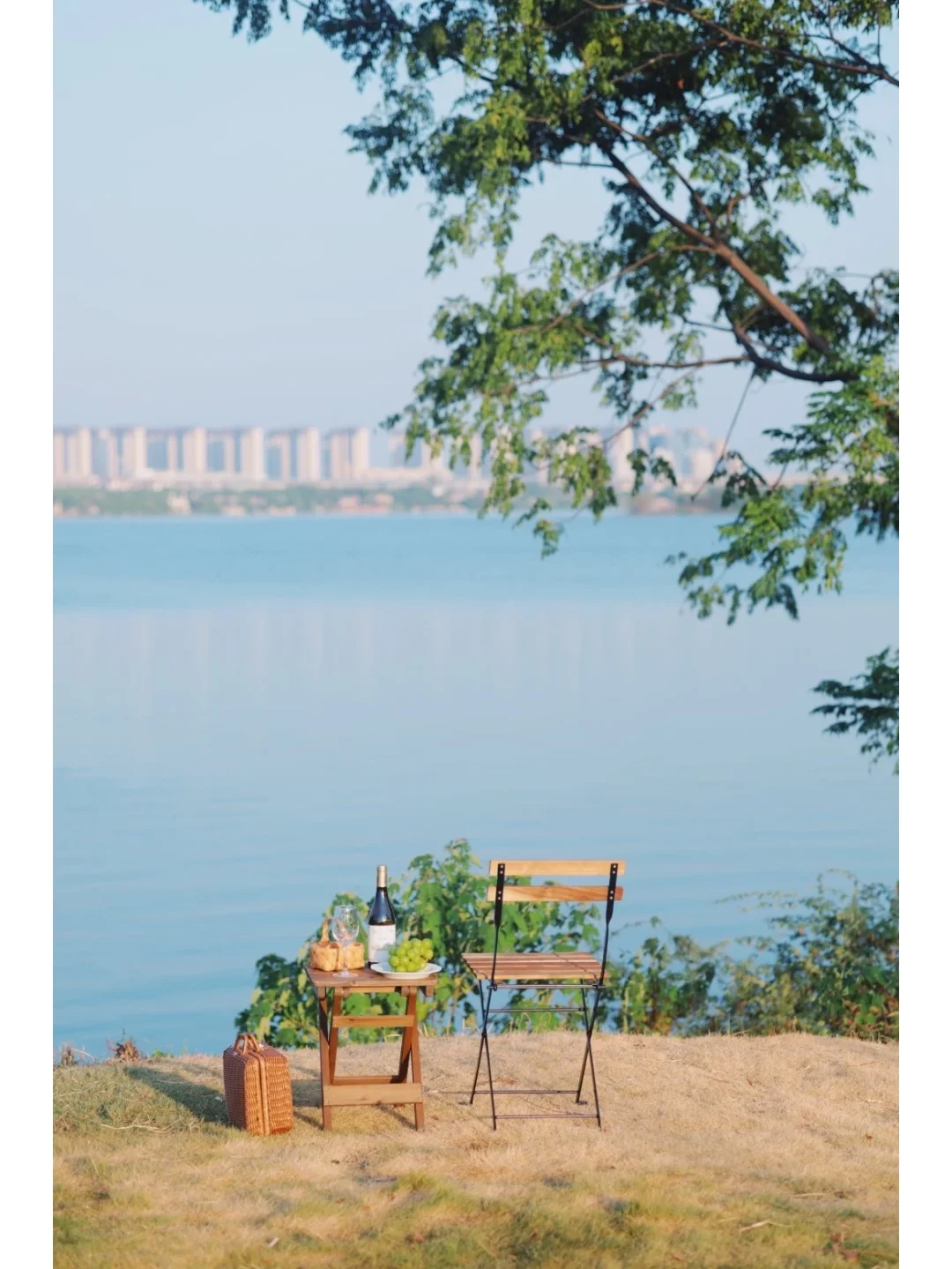 🌿晴天湖水特别蓝,有种在海边的感觉,带上一瓶圣芝干白葡萄酒,开启一场法式微醺浪漫之旅~
