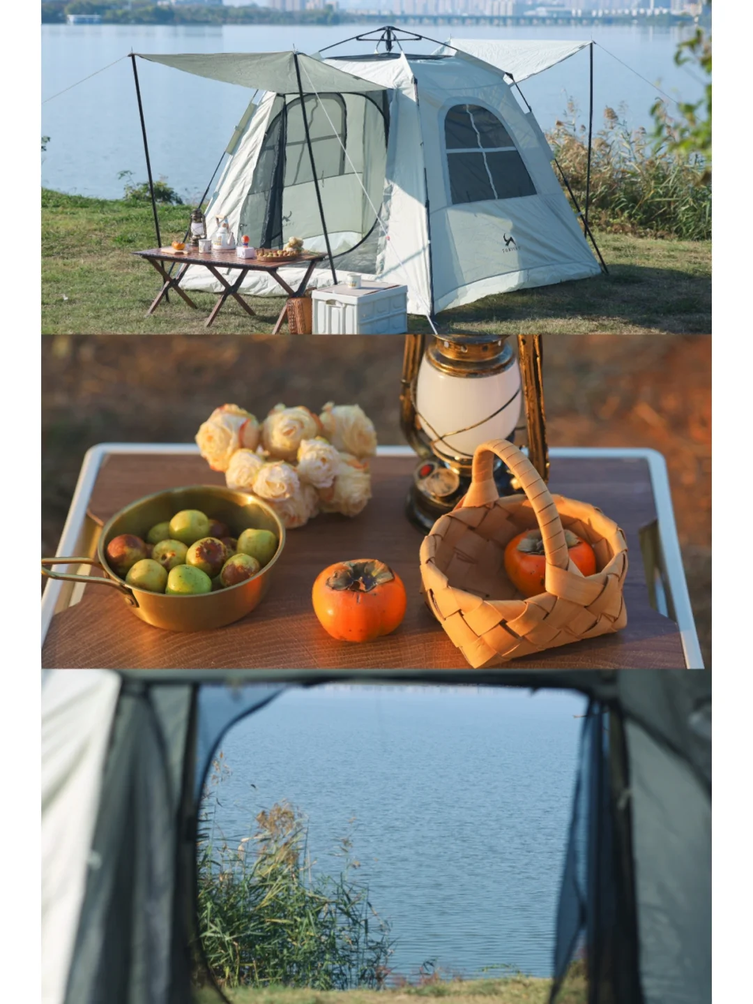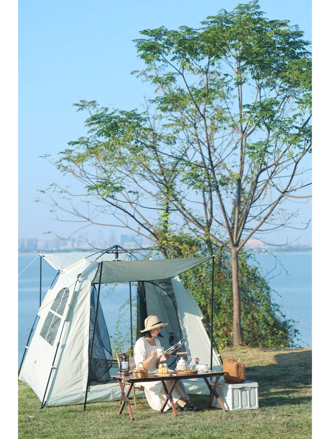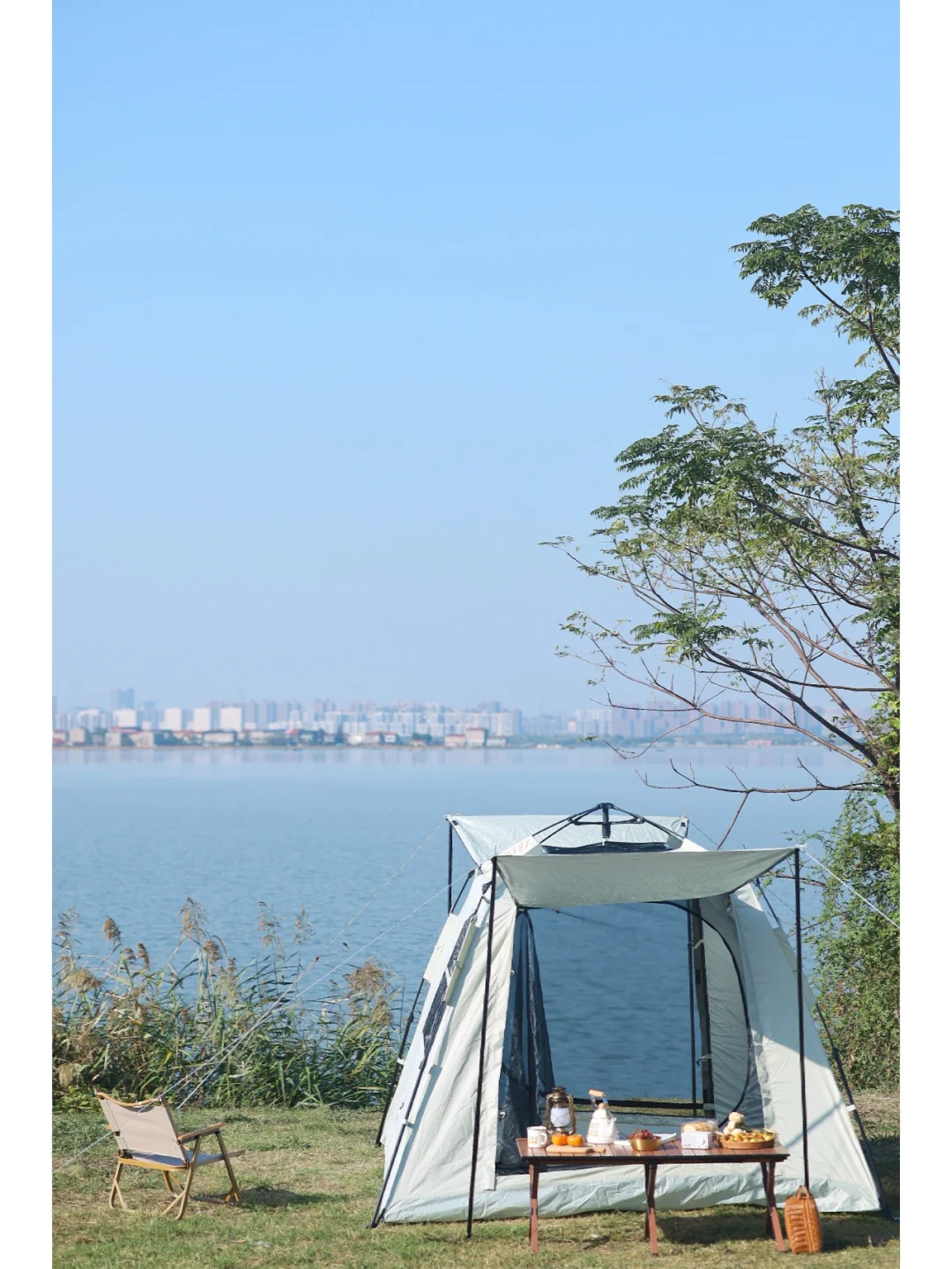 ✔️这次露营我带了途盟铝合金蛋卷桌和全自动速开帐篷,颜值非常高,操作简单,收纳和携带也很方便