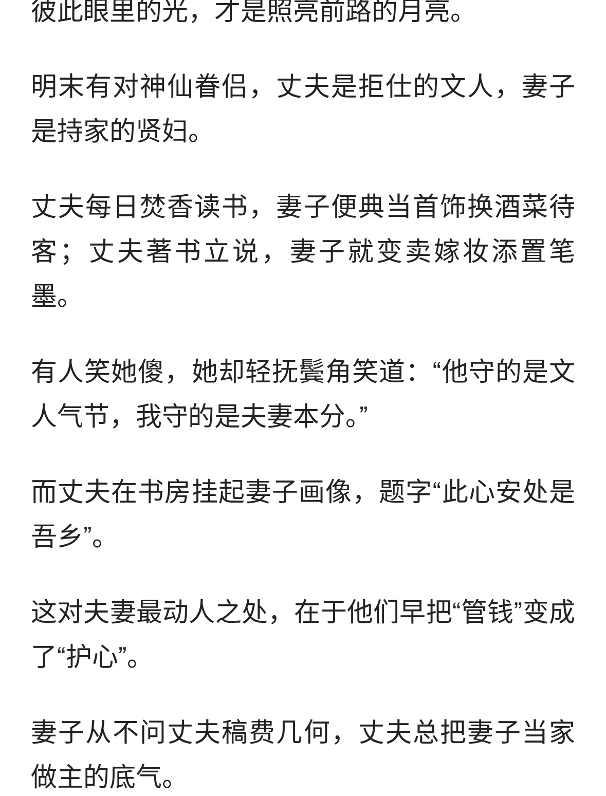 一段醍醐灌顶的话: 一等夫妻——同床裸睡。 二等夫妻——同床合...