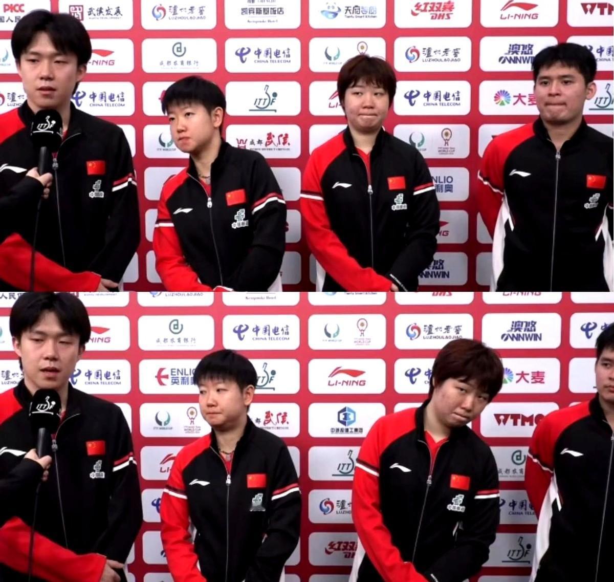 看到王楚钦带队采访的画面,真是有点意思。 王楚钦一本正经地对着镜头,越来越有大将风范了。可他身后的三小只完全是另一幅景象。和蒯曼,身子都快歪成S形了,一个劲儿地往旁边瞅,也不知道被什么好玩的东西吸引了。旁边的林诗栋更是直接进入“省电模式”,抿着嘴不知道神游到哪儿去了。 这场景很难不让人想起当年马龙带着“不高兴和没头脑”的样子。国乒这种“哥哥带弟弟妹妹”的传承感,真的不只在球场上。王楚钦在前面稳重输出,后面三个小的各玩各的,画面太有爱了。不得不说,现在这几位小的,比当年的“傻儿子”们还要活泼可爱。