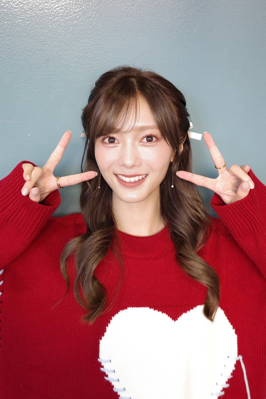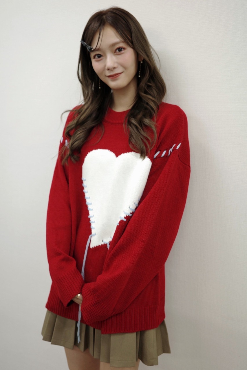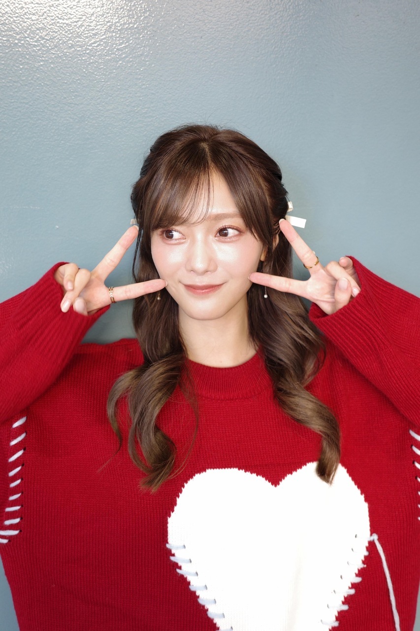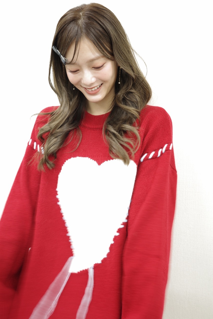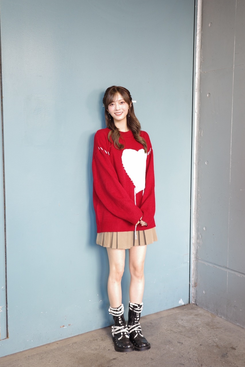 たむらほの②「ハートのニットとか着ちゃったりして、、ちょっとクリスマスを意識してみました。冬は赤色のお洋服がふえるーー!!!🎅🏻グッズを身につけてきてくれたり、手作りしてくれたり、かわいく、かっこよくしてきてくれてありがとう嬉しいよーーー😌。」