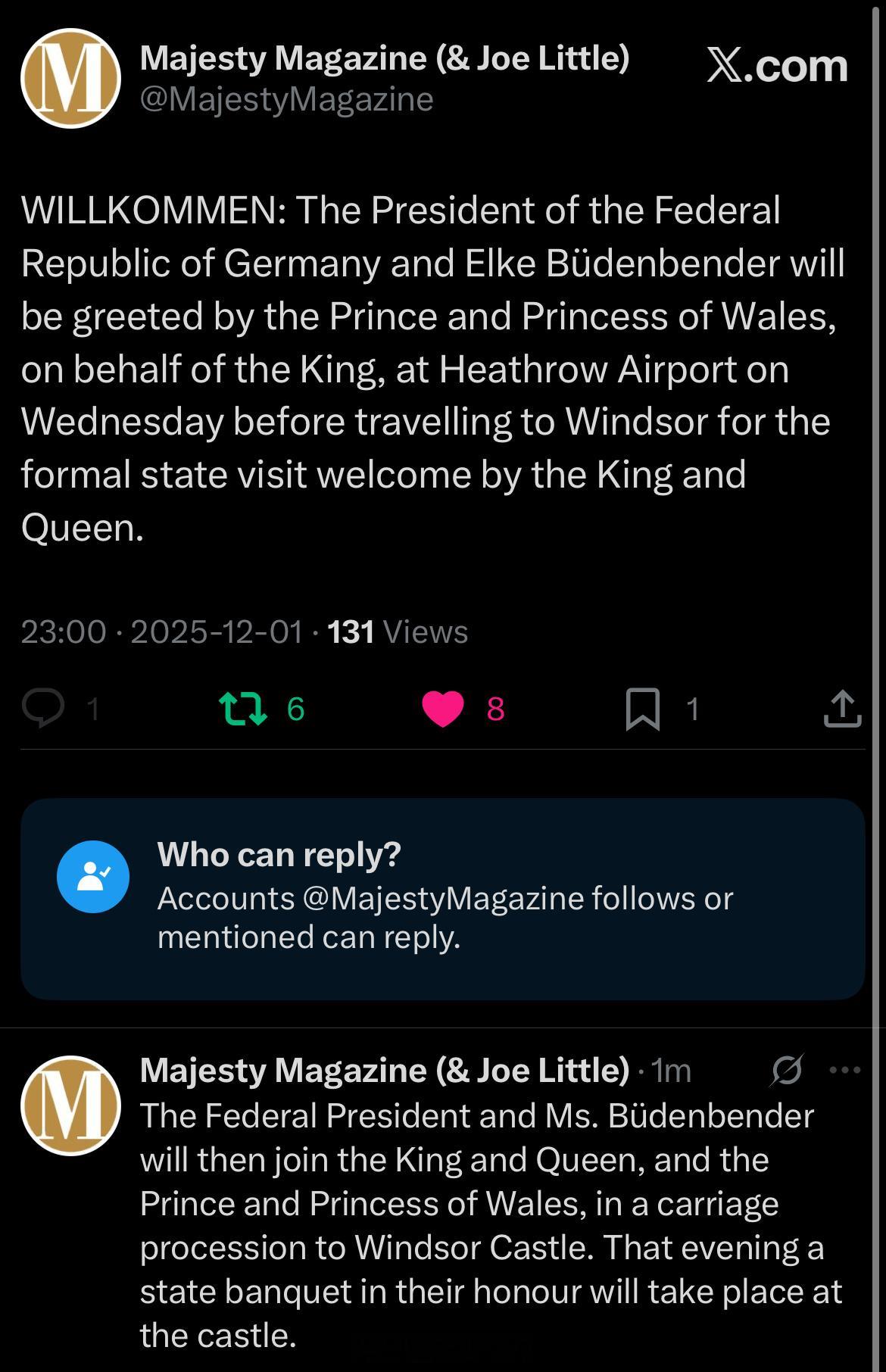 星期三就有国访,就知道没有你漂亮国事儿多,这不就安排威尔士亲王夫妇亲自去希思罗机场接机,然后就有马车安排去温莎城堡。我承认我🍋了那天简直是除了飞机什么都没得看啊