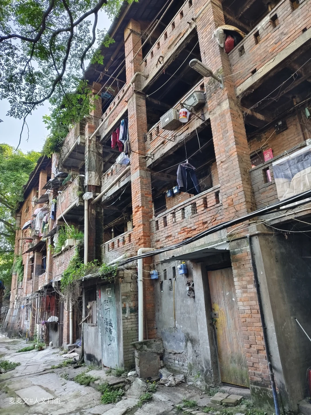 漫步其中,能看到一些生活痕迹。老式的晾衣绳在风中轻轻晃动,仿佛还在诉说着昔日的烟火气。偶尔有老人坐在楼前,回忆着过往的时光。