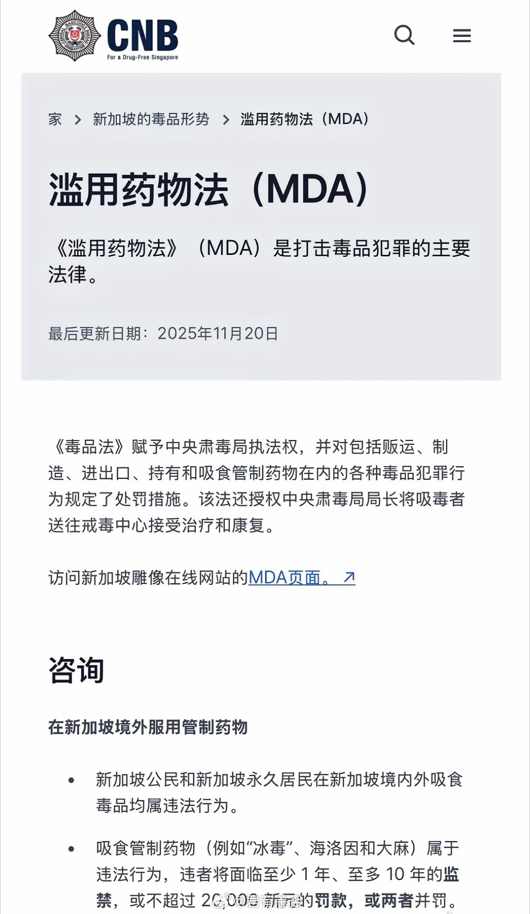 当我通宵查阅世界各国是怎么对待吸毒者的时候,我看到了图1的韩国《麻醉品管制法》——嗯,韩国已经把吸毒入刑了,即使是第61条最轻微的飞叶子(吸食大麻),也要被判5年以下有期徒刑,而第60条的吸毒?嗯,判10年以下有期徒刑。而图2的新加坡一样把吸毒入刑了,而且更狠的是,只要查到吸毒,不管在不在新加坡,即使是在其他国家吸毒,一律判1~10年的监禁。嗯,甚至连小日本也把吸毒入刑了,持有/使用(吸食/注射)海螺因是判10年以下监禁,飞叶子(吸大麻)是判7年以下监禁。唉,原来我们在吸毒入刑的立法方面,还没有新加坡、韩国和小日本入刑快?。