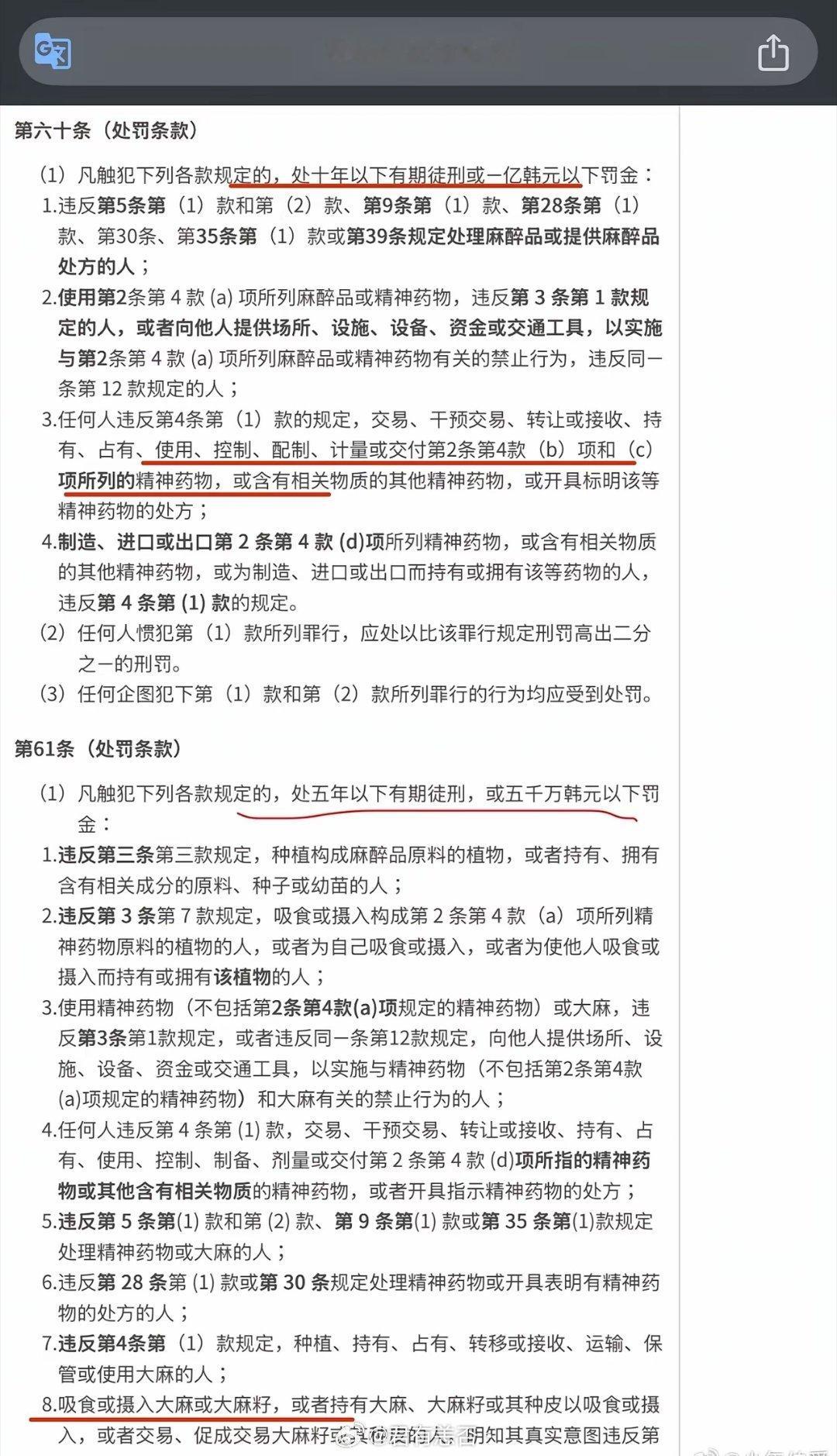 当我通宵查阅世界各国是怎么对待吸毒者的时候,我看到了图1的韩国《麻醉品管制法》—