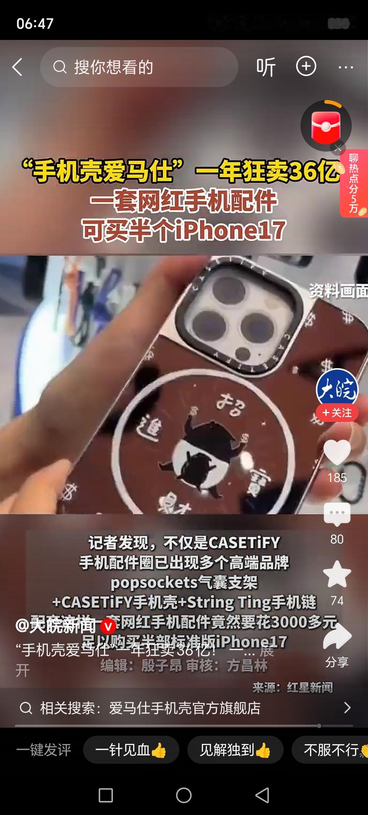 36亿!“手机壳爱马仕”凭啥让年轻人疯抢?成本几十块的塑料壳,卖500元起还被炒到3000元,这根本不是买配件,是为情绪和社交买单! 年轻人早不把手机壳当防摔工具了,它是穿搭延伸,是圈层名片。BLACKPINK联名款开售秒空,定制款成社交平台晒单利器,花几百块买的是“我懂潮流”的认同感。 高价背后不是材质溢价,是品牌摸透了Z世代:用限量和联名造稀缺,用设计承载小确幸。但跟风抢购前得想清,是真喜欢还是为虚荣心买单? 你愿意花半个月工资买个手机壳吗?还是觉得9.9元包邮的也很香?来评论区聊聊~
