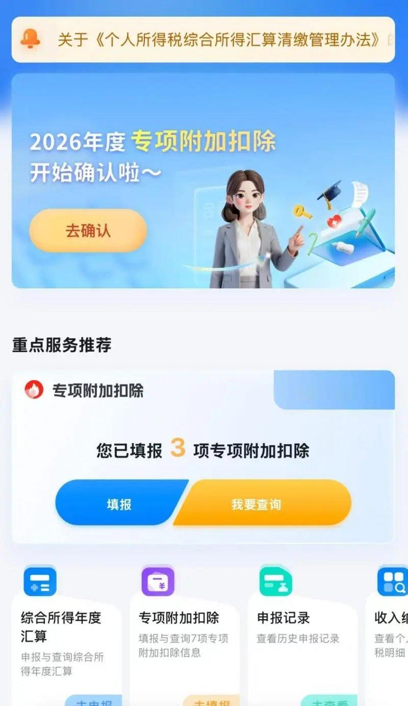 有用的信息:2025年12月1日至30日,2026年度个税专项附加扣除信息确认开