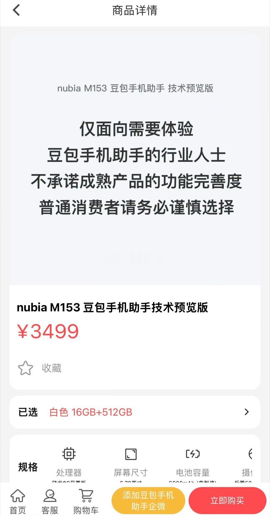 首款豆包助手手机3499元开售 豆包手机,中兴Nubia 代工!原来的哪个中兴又回来了吗?还是AI手机真的爆发了。此时主打AI手机还早,有收引力,但没有太在实的用处,还不如整一部AI眼镜。