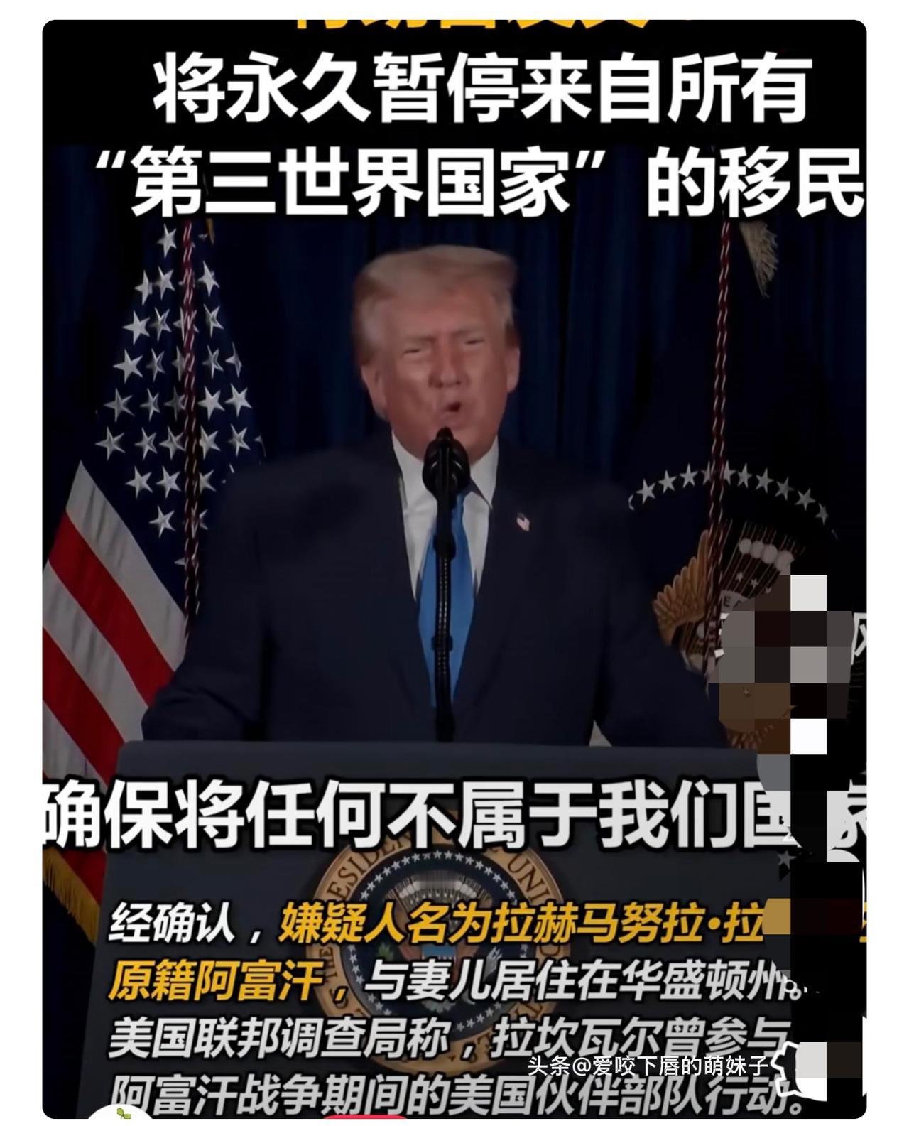 特朗普“移民禁令”炸锅!19国梦碎,但印度墨西哥人却安然无恙? 家人们,特朗普这回真把移民圈搅翻天了!直接甩出“永久暂停第三世界国家移民”的行政令,19个国家被拉黑,无数人的美国梦瞬间碎成二维码。但最离谱的是——印度、墨西哥人却毫发无伤?这政策水太深,咱得扒扒底! 先说最魔幻的:“第三世界”名单竟有“VIP通道”!阿富汗、缅甸这些弱国全军覆没,但印度兄弟凭STEM技能、墨西哥老铁靠种地本事,直接被特朗普“网开一面”。说白了,就是“有用即豁免”!更讽刺的是,“第三世界”这词本是冷战古董,现在被特朗普拿来当政治武器,连瑞士当年都算“第三世界”,如今却成了歧视代名词。 政策狠到什么程度?不光新移民进不来,连已拿绿卡的都要“回头看”!移民局手握生杀大权:查你银行流水、翻你社交媒体、盯你原籍国亲属,随便找个理由就能撤销绿卡。阿富汗最惨,连旅游签都停了,正在等面签的全被鸽了。导火索是白宫枪击案——凶手是拜登时期“盟友欢迎行动”放进来的一个阿富汗人,特朗普立马开喷:“拜登带进来一群定时炸弹!”。 但美国自己先炸锅了!农民协会怒吼:“没移民工人,菜烂地里谁负责?” 亚马逊、微软等科技巨头联名抗议:“高技能人才签证再紧,我们全跑爱尔兰!” 连国会都慌了,把经济增长预测从1.9%砍到1.4%——移民一走,美国经济直接被抽筋。更绝的是司法大战:联邦法院暂缓部分条款,37个州检察长联署反对,民主党州直接告上法庭。 全球影响更吓人!德国、英国右翼势力趁机跟风,全球移民政策集体右转。联合国难民署怒斥:“这是在砸国际庇护体系的锅!” 可特朗普才不管,他放话要“清除所有不能为美国创造净价值的人”——说白了,就是按国籍搞“人种拍卖”。 现在问题来了:这政策真能落地吗?还是只是特朗普拉选票的噱头?评论区吵翻天,有人说“美国终于硬气了”,也有人骂“这是现代版排华法案”。你怎么看?