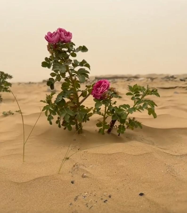 10万株玫瑰在"死亡之海"绽放。 以前为了治沙,在沙漠中种下的草方格,如今生出了象征“希望”的玫瑰。 治沙从和自然的对抗,走向了共生。 真正的治沙,并不是让大地活下来,而是让它变得更美。 治沙人在绝望的大地上播种浪漫,让希望扎下了深深的根。 面对塔克拉玛干这片“死亡之海”,中国人民从来没有像其他人一样逃离,而是一起挽起袖子,去对抗这亿万年来的荒漠。 外国的英雄都是想象出来的,而我们,是真的有英雄。