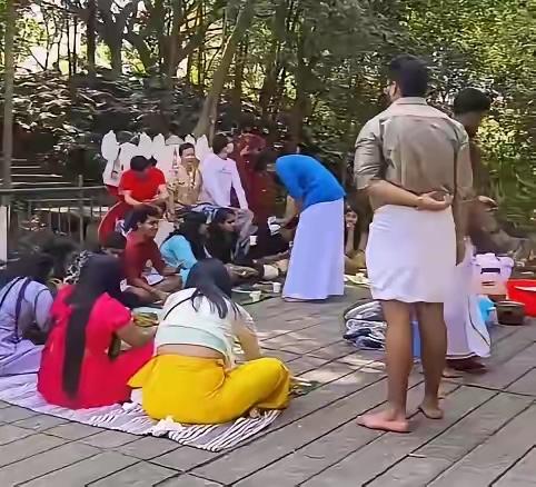 印度人在异国他乡也很有情调,出国也不忘家乡的那一套! 一群印度人在成都的一公园里大聚会,公共场合席地而坐,地上放着大锅,锅里好像是印度的特色美食咖喱饭,印度人对咖喱饭这么上瘾吗?锅里粘稠的咖喱饭看着就令人恶心,印度人用手蘸着盘子里的咖喱汁液津津有味的边吃边聊天,悠闲自得。还有人赤脚在地上走。咖喱味很远就能闻到,外国人都比较讨厌印度的咖喱饭和手抓饭,印度人既然出国了就注意下影响,不要在公共场合吃这些,关起门在自己私密空间想干嘛没人会管。印度人真不自觉,脸皮厚。