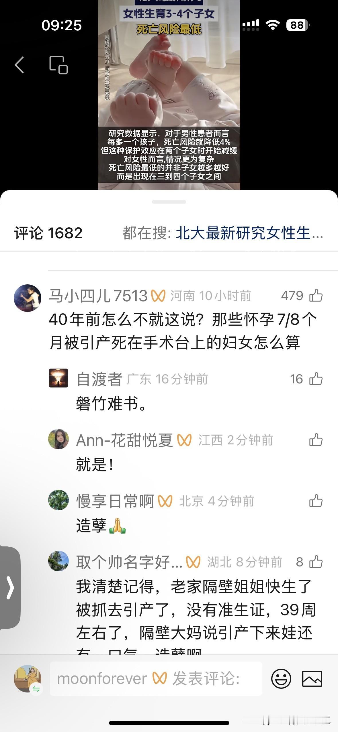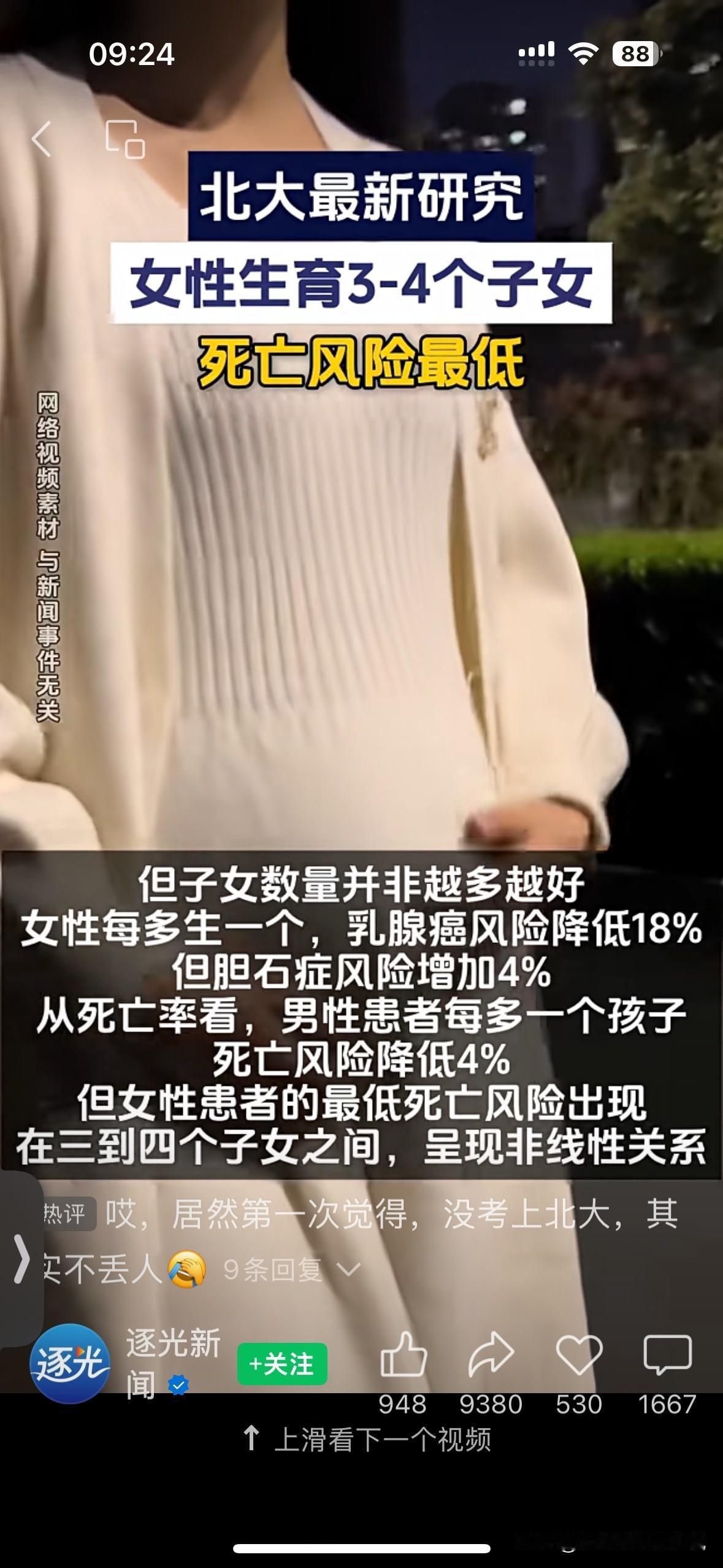 北大最新研究:女人生3-4个孩子,死亡风险最低! 啥也别说了,看评论吧! 身边只知道一个考北大的,人家也去美国了。 手里的棒子只好放下。