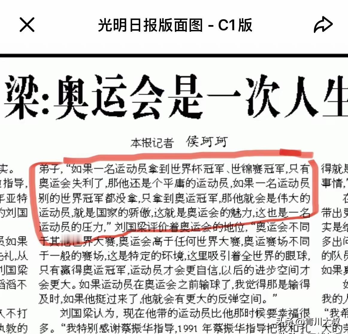 为什么陈梦直言,拿到巴黎奥运会金牌就不遗憾了! 刘国梁更坦言: 如果只拿到世界杯金牌和世乒赛金牌,而没拿到奥运会金牌, 她还是平庸的! 原来在球员和教练眼里, 世界杯和世乒赛的分量, 根本没法和奥运金牌比! 所以陈梦说:她不遗憾,应该是真的!
