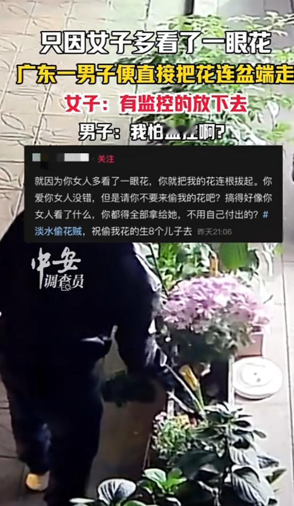 “活不起了!”11月27日,广东惠州,一对男女路过店铺时,因为女子夸了一盆花好看,男子竟将店门口的花连根带土拔走,女子立马阻止男子,并表示有监控,快放回去,没想到男子嚣张回应:“我怕监控吗?”。网友:偷花献殷勤! 那天晚上天气不冷不热,俩人慢悠悠地逛着街,路过一家店铺门口时,女子无意间瞥见店门口摆着一盆盆栽花开得正艳,看着特别喜人,就随口说了句 “这花真好看”,本来就是一句无心的夸赞,谁知道旁边的男子当了真,立马拍着胸脯说要给她 “弄一个回去”,让她高兴高兴。 大家都以为他是想进店问问价格,或者记下药名回头买同款,没料到这男子脑回路清奇,压根没想着花钱,只见他左右看了一眼,趁着街上人不算太多,直接蹲下身伸手就去拔那盆花。 他下手特别粗暴,连花盆都没碰,硬生生把花从盆里连根带土拽了出来,泥土顺着指缝往下掉,好好一盆花瞬间变得狼狈不堪。 随行的女子一看这架势当场就慌了,赶紧出言阻止,让他赶紧把花放回去,还特意提醒他 “这里有监控”,意思很明显,这是别人的东西,偷拿是不对的,而且监控拍得清清楚楚,被发现了没好果子吃。 换作正常人听到 “有监控” 三个字,肯定会立马收手,可这男子偏不,反而一副嚣张跋扈的样子,压根没把监控和女子的劝阻放在眼里,那意思就是 “我怕监控吗?”,仿佛监控不仅吓不到他,还成了他耍横的底气。 女子还在一个劲地劝,说这样太丢人了赶紧还回去,可男子完全听不进去,攥着那株带土的花,大摇大摆地就走了,留下一滩泥土在店铺门口,显得格外刺眼。 他大概觉得自己这是 “英雄救美” 式的浪漫,为了博红颜一笑,连规则都敢藐视,殊不知在路过的行人眼里,这就是典型的小偷小摸,连最基本的社会公德都没有,看着特别掉价。 店主第二天发现花被偷了,查看监控才知道发生了这事,心里又气又无奈,其实那盆花值不了几个钱,专门报警处理显得有点小题大做,但就这么忍了,又觉得助长了这种歪风邪气。 思来想去店主把监控视频发到了网上,还配了句调侃的话,意思是你疼自己的女人没问题,但也不能偷别人的花啊。 没成想视频一上网,立马引发了网友热议,大家都在吐槽这男子 “活不起了”,“为了一盆花丢尽脸面”,“偷花献殷勤,真是又蠢又坏”。 原本嚣张得不怕监控的男子,看到自己的丑行被全网围观,这下彻底慌了神,他没敢自己出面,而是托了个朋友联系店主,一个劲地求情,希望店主能把视频删掉,别再让更多人看到了。 这操作就更讽刺了,偷花的时候喊着不怕监控,现在被曝光了,又怕丢面子求着删视频,早干嘛去了?面对男子的请求,店主的回应也挺硬气,想删视频可以,必须把花怎么拔走的,就怎么原封不动地种回去,言外之意就是,成年人得为自己的行为负责,偷了东西就得认错,不能一句求情就完事。 其实说来说去,想哄女朋友开心压根没错,但得用正当的方式啊。喜欢花可以花钱买,哪怕买一盆便宜的,也是真心实意,可偷别人的东西来献殷勤,不仅感动不了人,反而会让伴侣觉得羞耻。 这男子本来想装一把 “霸道总裁”,结果把自己活成了全网的笑柄,真是偷鸡不成蚀把米。现在好了,花没送明白,脸也丢尽了,还得回头去给店主道歉种回花,这 “活不起” 的操作,也是没谁了。 (信息来源:《11月27日,广东惠州。只因女子多看了一眼花,广东一男子便直接把花连盆端走。女子:有监控的放下去。男子:我怕监控啊?》中安在线)