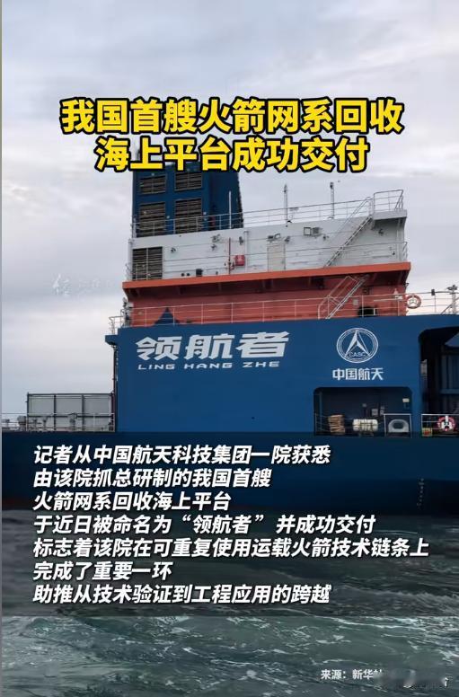 🚀海上接箭!我国首艘“领航者”平台交付,航天再添王牌 青岛港惊现“海上巨无霸”,专等火箭“回家”!我国首艘火箭网系回收海上平台定名交付,它藏着中国航天降本增效的关键密码✨ 这款被命名为“领航者”的平台,由航天科技集团一院抓总研制,是我国首个取证的海上火箭回收平台。它与网系回收装置搭档,能在海上构建精准回收系统,让火箭箭体安全“着陆”。从2024年9月论证到2025年交付,仅用14个月就突破多项技术难题。 很多人以为它只是“回收船”,实则是航天航海技术融合的利器——它能减少火箭返程燃料消耗,还能依托海运快速转运箭体,让太空探索成本大幅降低。更意外的是,它将推动载人天地往返系统更新换代。 “领航者”已启航,中国航天回收迈入“海洋时代”。你觉得它下次会接回哪种火箭?评论区聊聊你的猜想👇 领航者平台交付 中国航天新突破