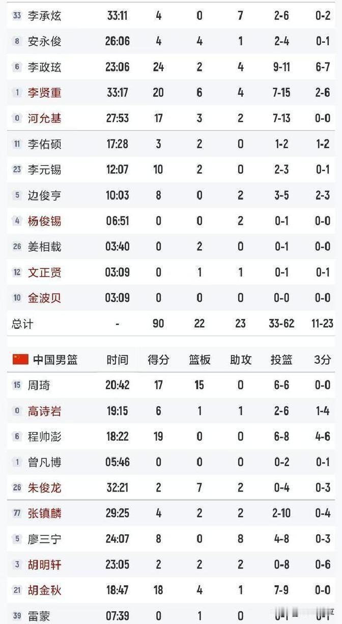 中国男篮昨晚客场对韩国那场球,简直让人捏把汗,本以为能扳回一局,谁知又栽了跟头,以76比90落后14分,吞下小组赛两连败。这下出线形势紧巴巴的,亚洲区就6个正赛名额,小组前三才能过关,现在咱们排第三,净胜分还吃亏。 比赛从头到尾,中国队就没喘过气来,开局没几分钟就双位数落后,最高时拉到32分,失误像不要钱似的扔,传球乱七八糟,外线投篮更是准头全无,全场三分球扔了28个只进5个,命中率低到谷底。韩国那边火力全开,尤其是李贤重,一个人就飙了9记三分,简直是场上的杀神,帮球队内外线都堵得死死的。中国队内线周琦还算硬气,砍下17分15板,篮下补扣稳稳的,可后卫线太虚,防守漏人,转换进攻还老掉链子。 不过新人程帅澎挺亮眼,末节前砍了19分,还带队追了波小高潮,可惜崭脚伤退,哎心疼。比起上场4分小负,这次差距更大,百回合得分才102分,远低于亚洲杯那会儿的115分以上,明显心态绷太紧,开局犹豫不决,投篮缩手缩脚。郭指导赛后也直言,得放松点,敢投敢拼才行。 出线还不是死局,对中国台北历史占优11胜1负,他们实力弱鸡,上场被日本虐惨,只要稳扎稳打赢两场,前三稳拿。关键是赶紧调外线准度,练好防守轮转,别再让对手随便三分雨。中国男篮底子厚,年轻小将潜力大,咬咬牙调整心态,下场对日本必须爆种,逆风翻盘才叫真本事