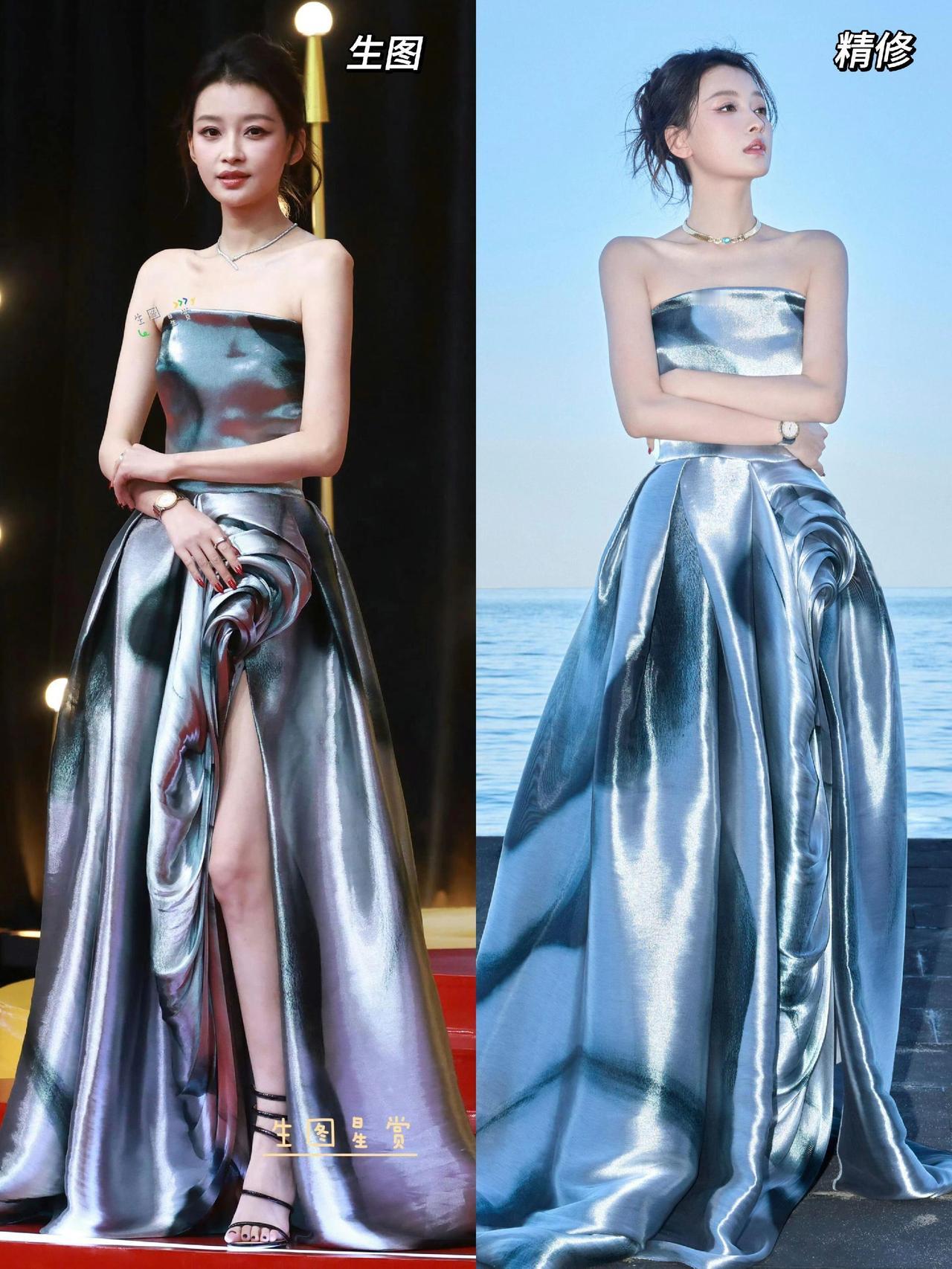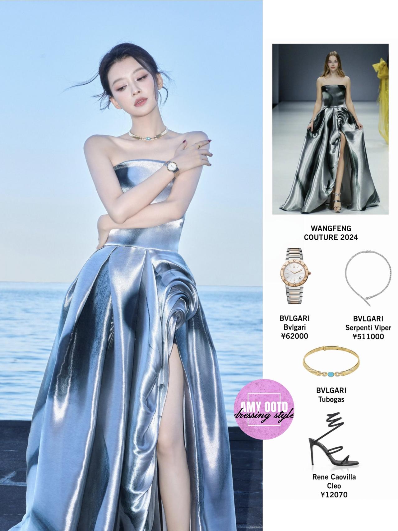 孙怡这身红毯礼服太戳“波光粼粼感”了!银色水光缎面抹胸裙自带闪耀buff,开衩设计衬出灵动;搭配BVLGARI珠宝和细高跟,贵气又精致,生图里的氛围感直接拉满~ 孙怡