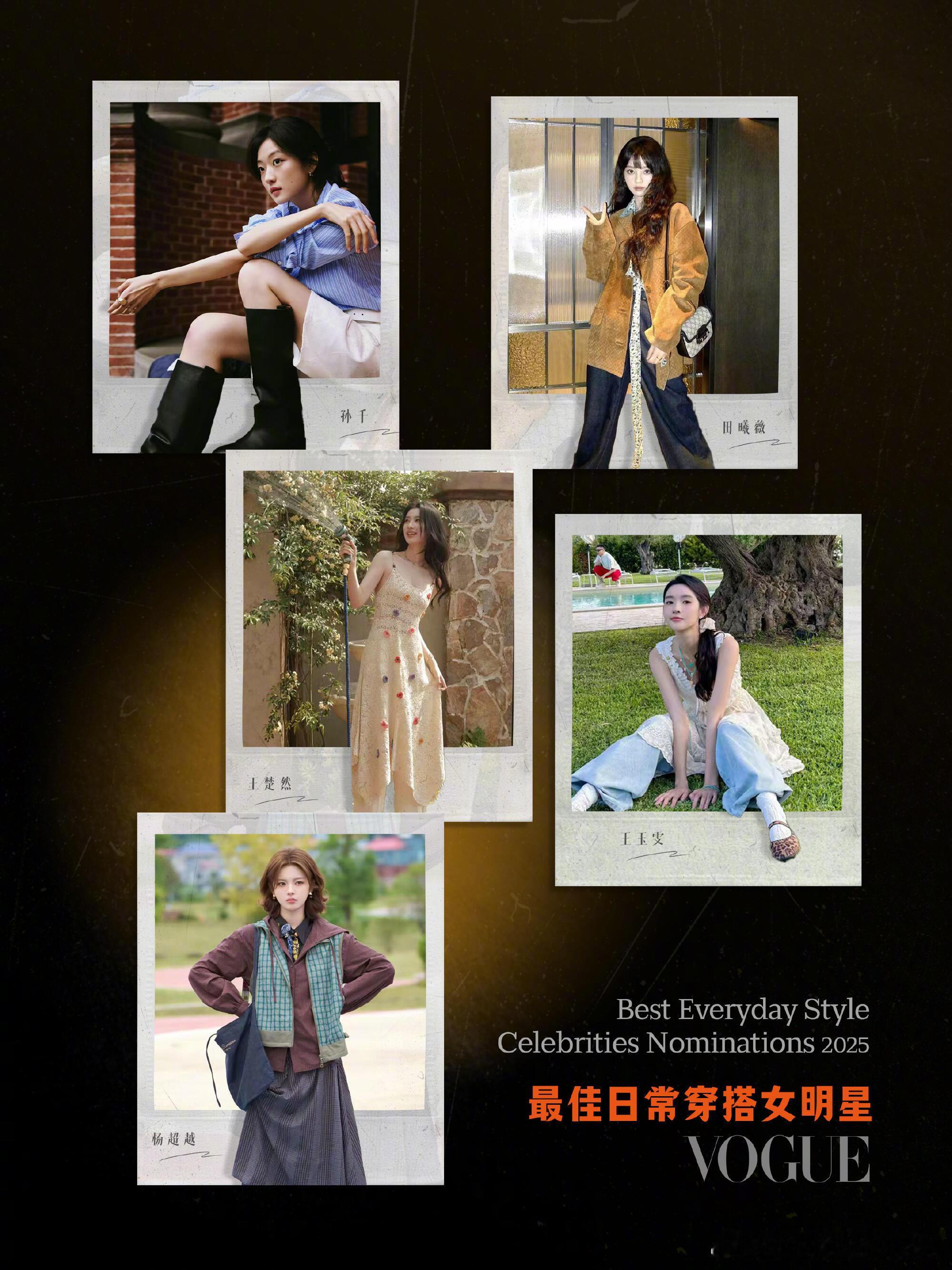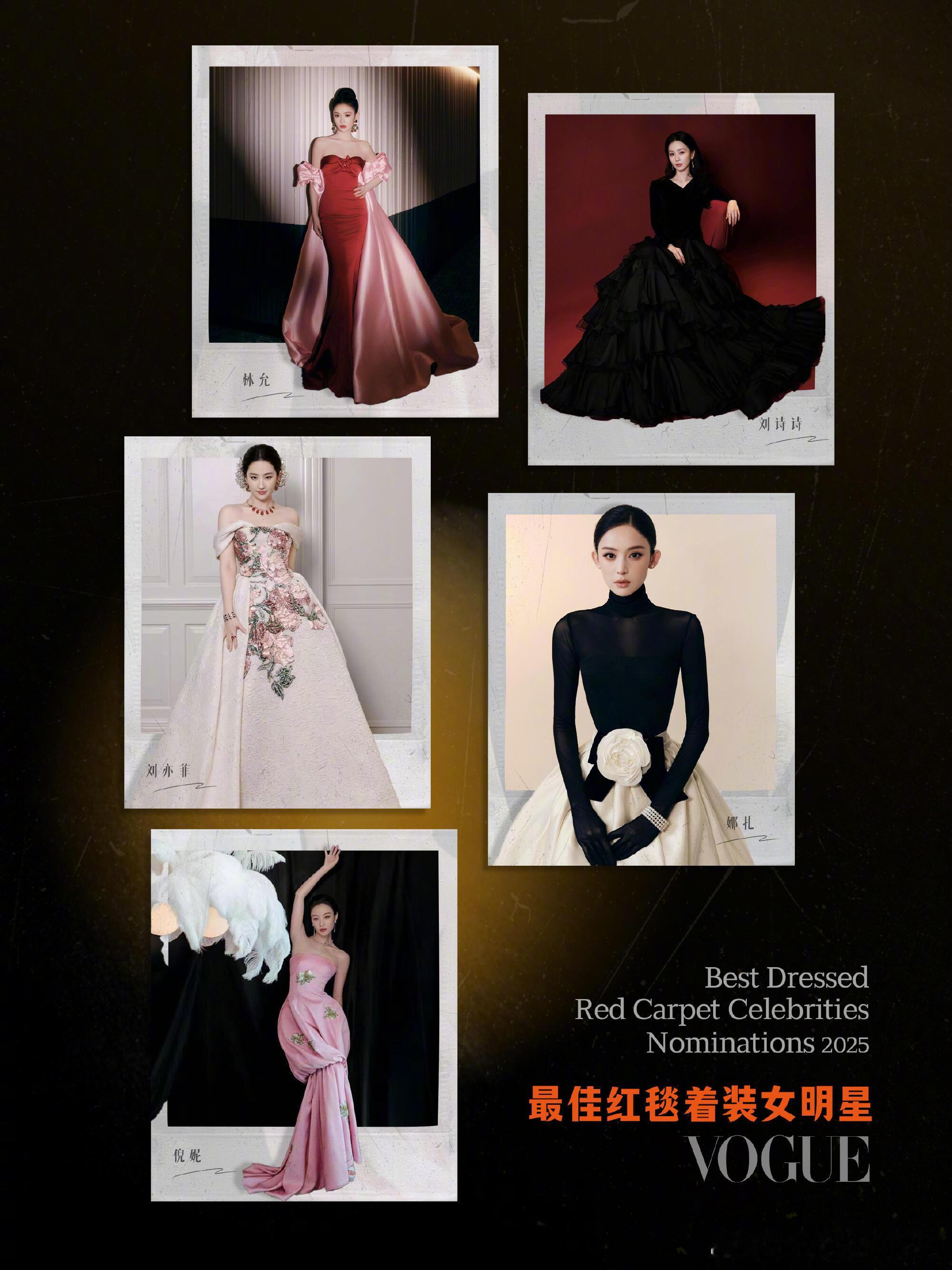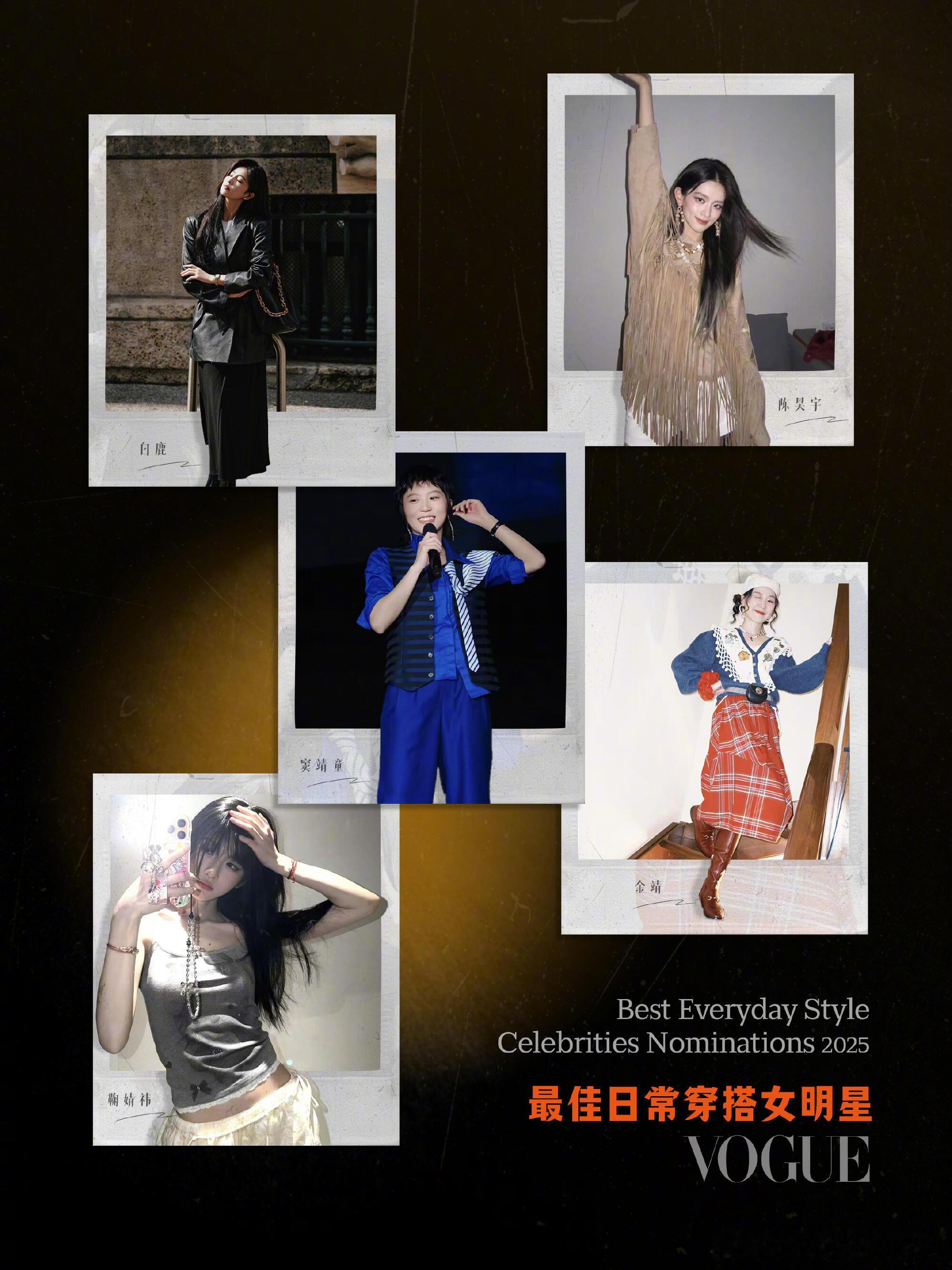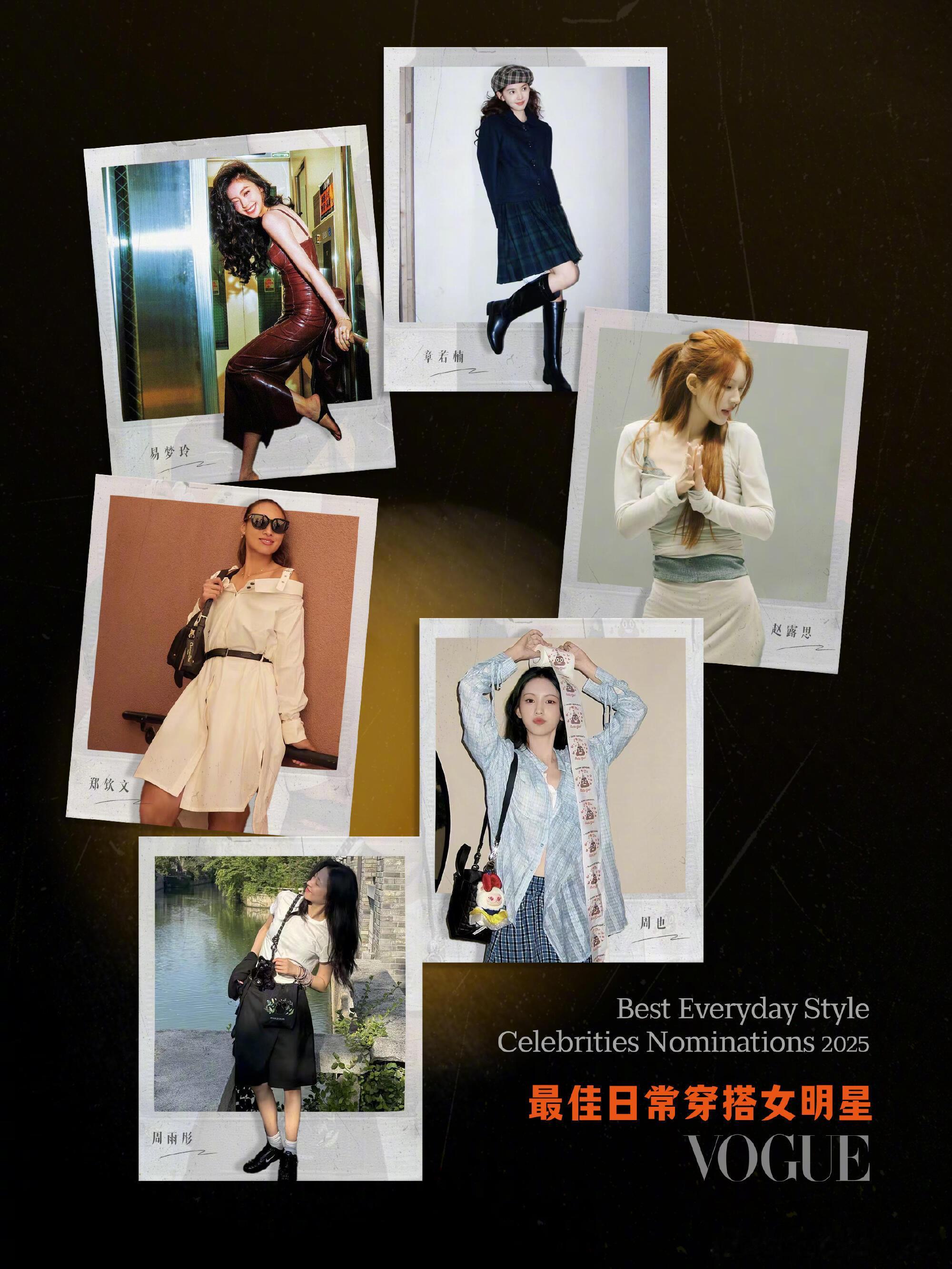 VOGUE年度最佳着装提名名单之女明星篇一、最佳红毯着装入围名单 迪丽热巴・迪力木拉提、谷爱凌、贺聪、金晨、李一桐、林允、刘诗诗、刘亦菲、古力娜扎、倪妮、宁艺卓、单依纯、舒淇、宋佳、宋茜、文淇、辛芷蕾、杨幂、杨紫、杨紫琼、张婧仪、张予曦、张小斐、钟楚曦、朱珠 二、最佳日常穿搭入围名单 白鹿、陈昊宇、童瑶、李雪琴、鞠婧祎、李兰迪、刘柏辛 Lexie、刘浩存、刘雯、刘雨昕、卢昱晓、欧阳娜娜、戚薇、宋雨琦、宋祖儿、孙千、田曦薇、王楚然、王玉雯、杨超越、易梦玲、章若楠、赵露思、郑钦文、周也、周雨彤 最终谁能入选呢?