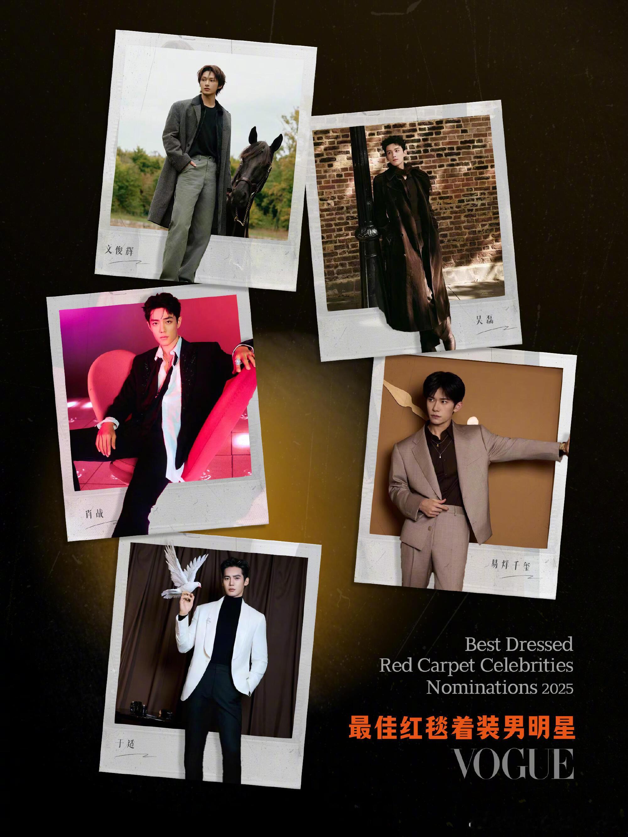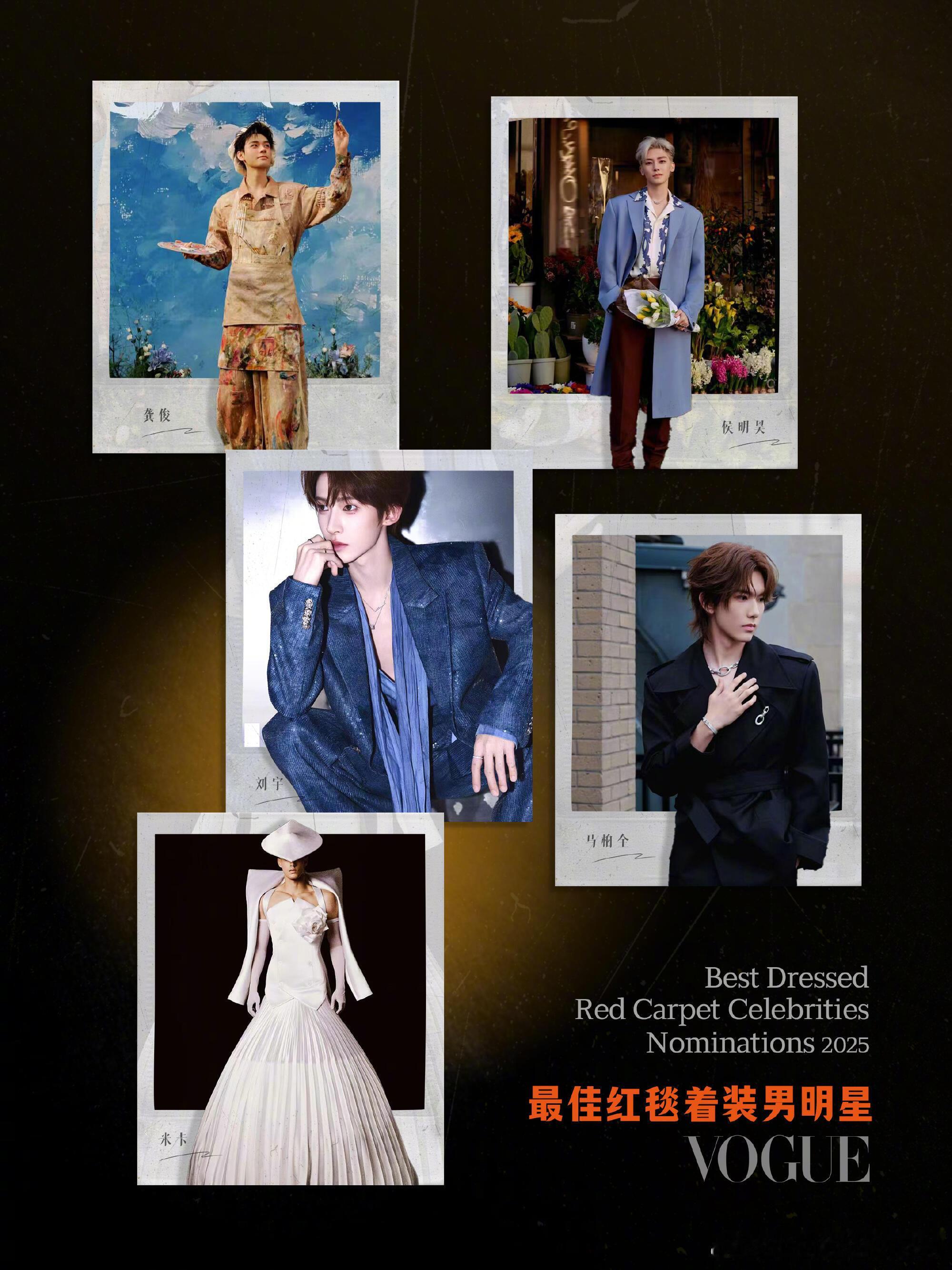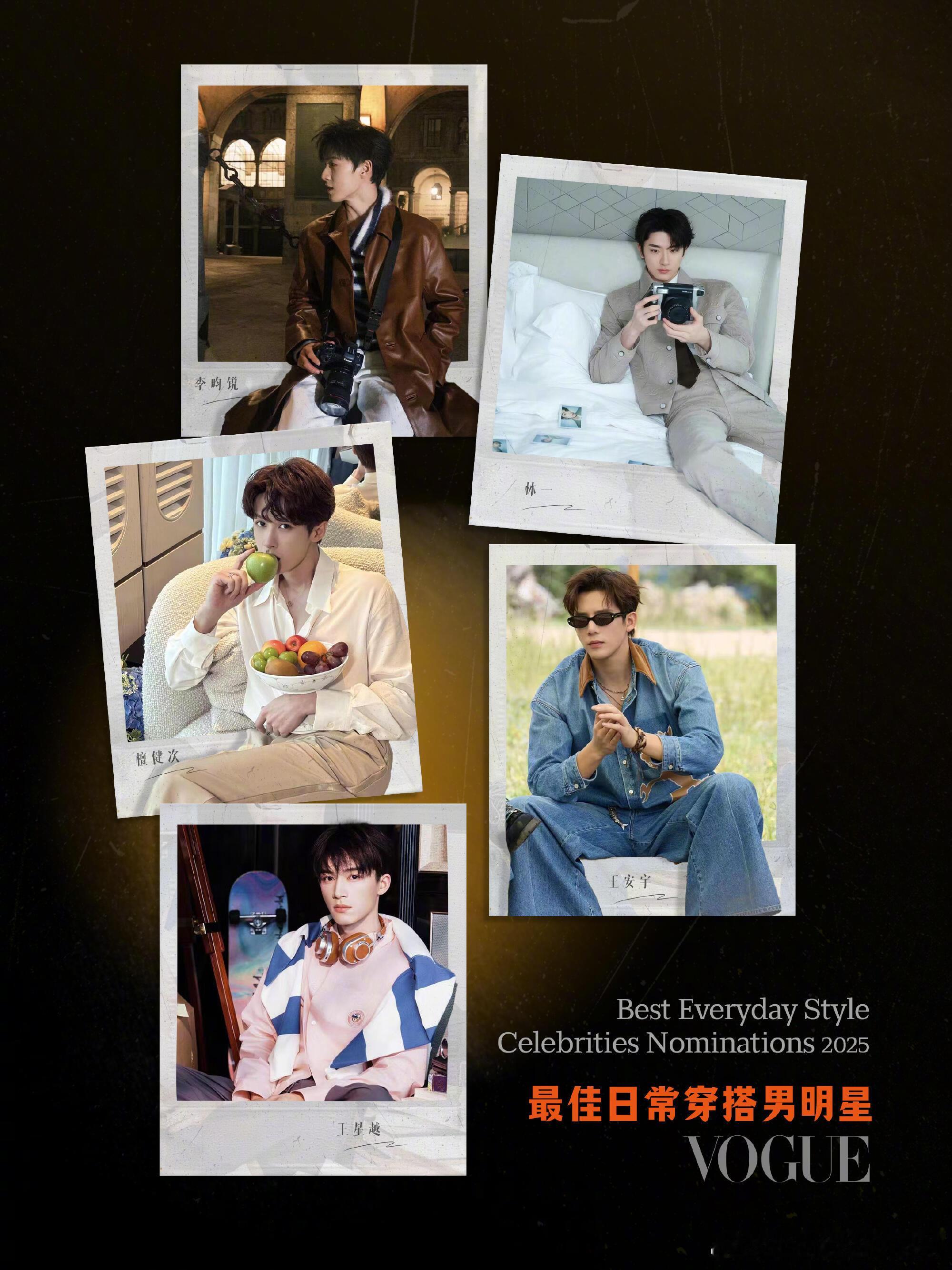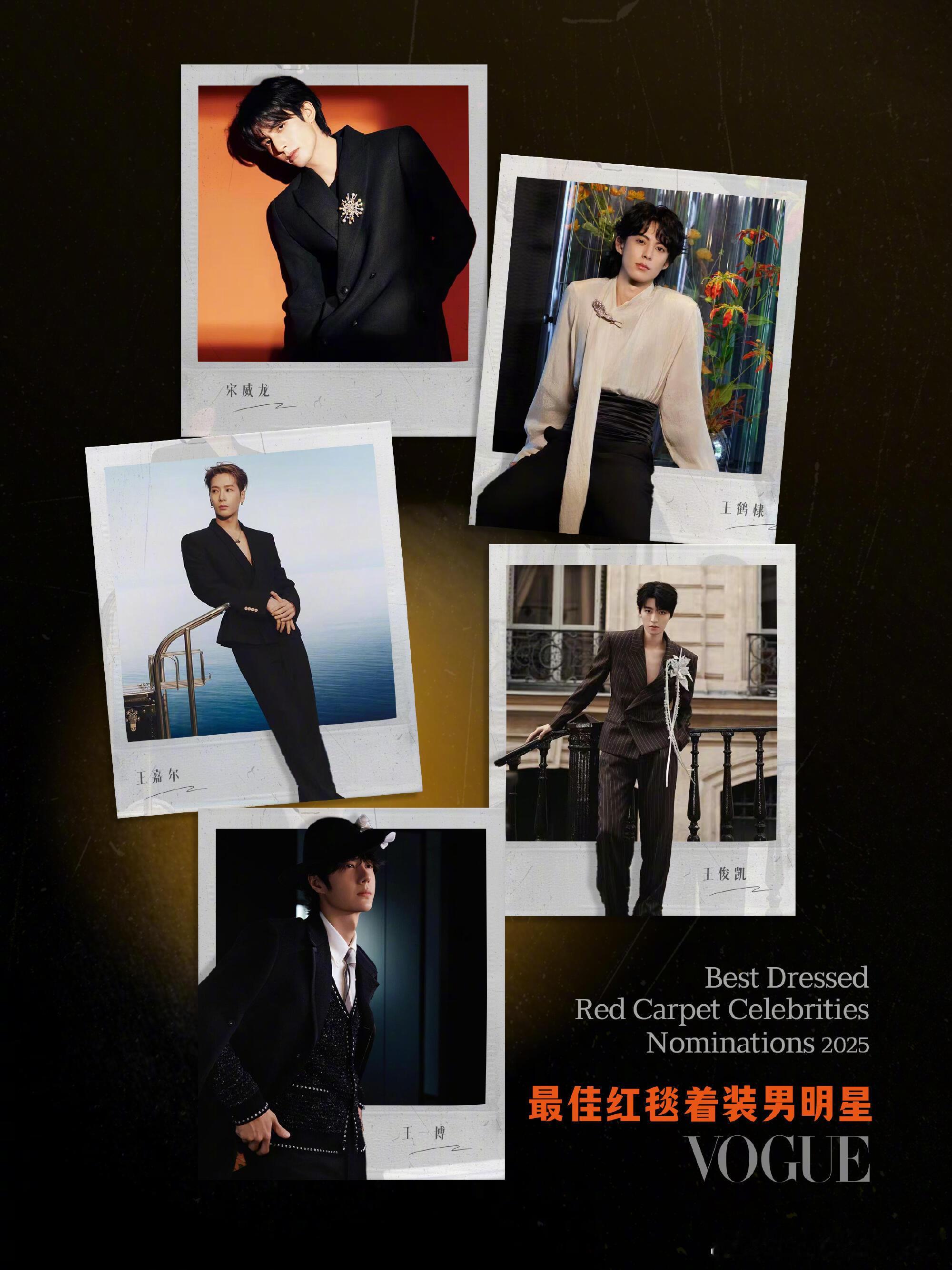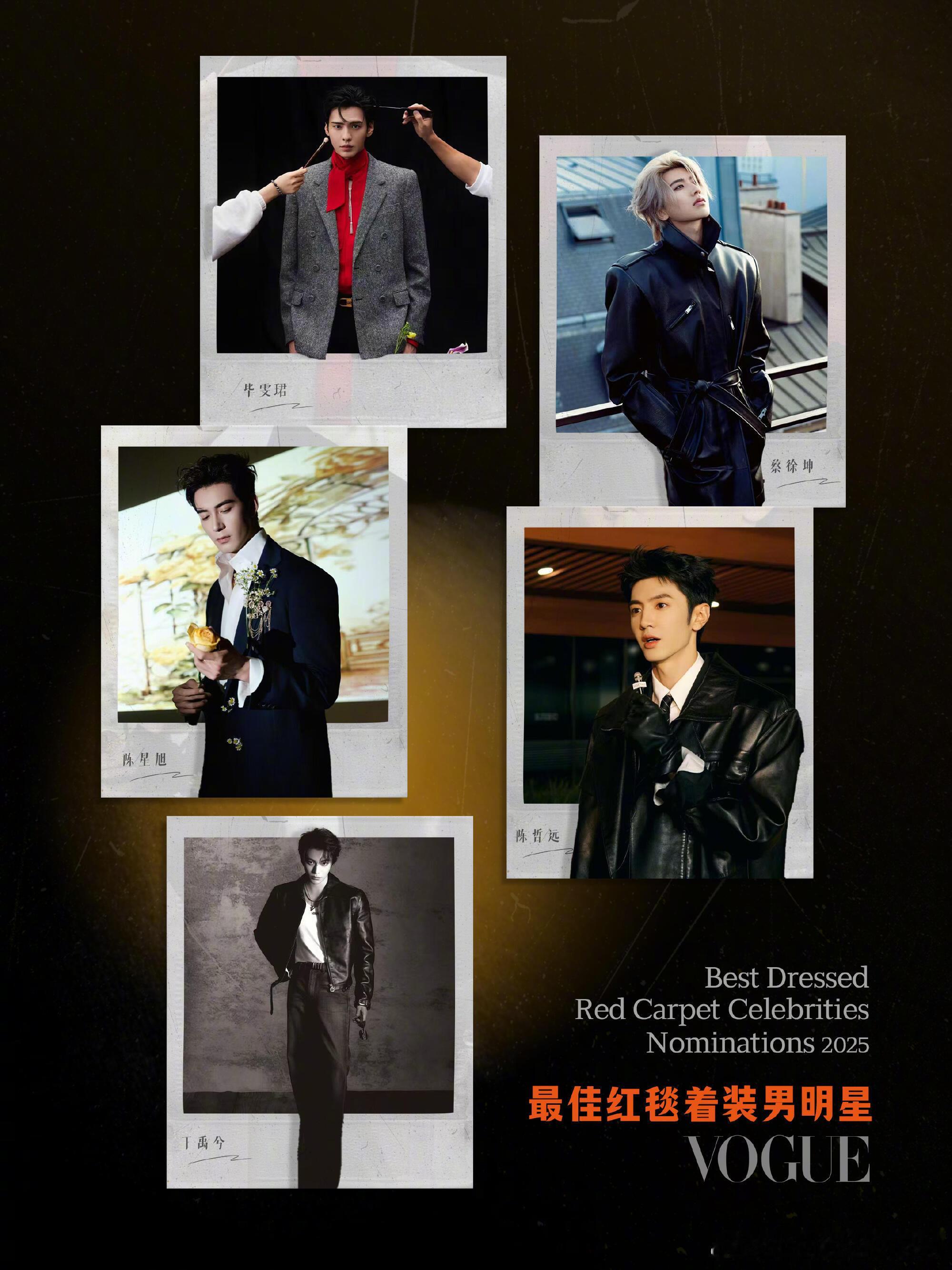 VOGUE年度最佳着装提名名单之男明星篇 一、最佳红毯着装入围名单 毕雯珺、蔡徐坤、陈星旭、陈哲远、丁禹兮、龚俊、侯明昊、刘宇、马柏全、米卡、宋威龙、王鹤棣、王嘉尔、王俊凯、王一博、文俊辉、吴磊、肖战、易烊千玺、于适、曾舜晞、张康乐、张凌赫、张若昀、朱一龙 二、最佳日常穿搭入围名单 白敬亭、常华森、丞磊、邓为、恩利、范丞丞、黄明昊、蒋奇明、井柏然、李现、李昀锐、林一、檀健次、王安宇、王星越、王源、闫桉、杨洋、余承恩、翟潇闻、章昊、张峻豪、张新成、周翊然 最终谁能入选呢?
