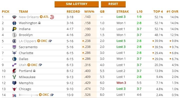 雷霆目前拿状元签概率为9.8%!新赛季篮不住