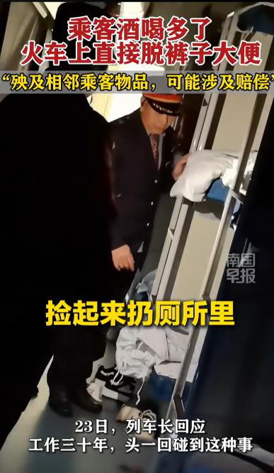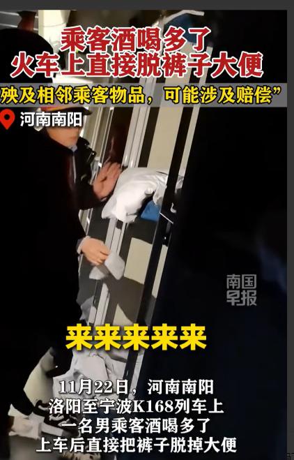 “这口味太重了!”河南南阳,一女子乘坐火车卧铺,睡梦中就觉得周围有臭味传来,睁眼一看,旁边一名男乘客竟然直接脱了裤子在过道中大便,女子连忙联系车上工作人员,就连列车长都表示:工作30年,头一回遇到这种事。 2025年11月22日晚,K165次列车缓缓驶离南阳站,夜色笼罩下的车厢里,卧铺区灯光柔和而温暖。 大多数乘客已经在长途旅行的疲惫中沉沉入睡,只有偶尔的翻身声、轻微的呼吸声,伴随着火车的轰隆声。13车厢中,一位年轻女子正躺在中铺上,疲倦的身体很快在晃动的车厢中进入梦乡。 寂静的夜晚很快被一股令人作呕的臭味打破。女子本能地皱起眉头,先以为是别人吃了变质的食物,或许是列车空调的异常味道。 随着臭味逐渐浓烈,她缓缓睁开眼睛,眼前的画面让她几乎无法相信自己的眼睛:在她卧铺的旁边过道里,一名中年男子神志不清,醉意明显,竟然脱下了裤子,直接在车厢过道中排便。 女子瞬间惊呆了,呼吸一滞,脑中闪过无数念头:报警?惊叫?还是自己先躲开?她手足无措,但本能地拿起手机。 拨打了车厢内的呼叫铃,同时高声呼喊寻求帮助:“工作人员!有人在车厢里……做这种事!” 不久,列车长和随车乘警迅速赶到现场。列车长手里拿着纸巾和清洁用品,面色严肃,却掩不住惊讶。 他低声与男子交涉:“先生,请您先清理干净,车厢里有其他乘客。”男子醉态可掬,支支吾吾,言语不清,似乎完全意识不到自己的行为给他人带来的困扰。 与此同时,周围的乘客纷纷睁眼,有的被臭味呛得皱起眉头,有的直接用衣袖捂住口鼻。 年轻男子叶先生回忆,自己坐在对铺,鞋子、行李箱都被溅到,地面上粘糊糊的污物让他忍不住皱起眉:“鞋子全脏了,行李箱也沾上了……根本没法放东西。” 其他乘客也纷纷表达愤怒和无奈,有的直接站起身拍照取证,有的默默掏出湿纸巾尝试清理。 列车长一边安抚乘客,一边指挥现场清理:“请大家稍安勿躁,先让当事人自行处理,之后再评估赔偿。”这是他三十年来第一次遇到如此离谱的情况,心里暗暗感叹:“真是前所未有……” 经过一番折腾,醉酒男子在工作人员和乘客的劝导下,蹒跚着尝试清理地面和污物,但由于醉态明显,动作缓慢且不规范。 乘警只得协助将大部分污染物收拾干净,以免影响列车其他乘客的通行和休息。列车长随后宣布,将对受影响的乘客进行合理赔偿,并提醒大家注意卫生,避免二次污染。 受影响的乘客中,有人情绪激动,有人则尽力保持冷静。 年轻女子回忆,当晚她整个人被这突如其来的“灾难”惊醒,鼻子仍然残留着难闻的气味,心理上也难以平复:“太恶心了,睡梦中突然看到这种画面,真的让人难以相信。火车是公共场所,他却把它当自己家了。” 事件在社交媒体上传开后,引起广泛关注和热议。网友们纷纷表示震惊和愤怒,有人评论: “太恶心了,这也太没有公共意识了吧!” “这不是把火车当厕所,是把火车当自家院子了!” “这种事情我听都没听过。” 不少目击乘客在社交平台上分享了当时的遭遇,引发大量网友讨论。 新闻曝光后,网友纷纷表示无法理解: “这口味是真重,简直刷新认知。” “列车长三十年第一次,我也是三十年第一次听说这种事。” “无论什么原因,这行为太危险了。” “希望相关部门加强引导,也要关注乘客精神健康问题。”