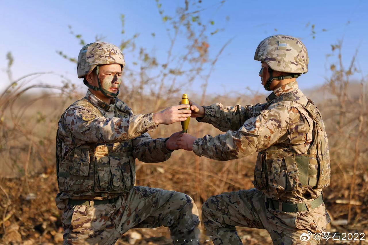 连里的迫击炮班正在进行实弹射击,这是连属60mm迫击炮。班长将安装好引信的迫击炮弹交给二炮手,非常小心翼翼,心里一定在想:这玩意虽然不太贵,也就我们几天的工资,但是要是掉地上摔坏了,抚恤金可是不少呢。