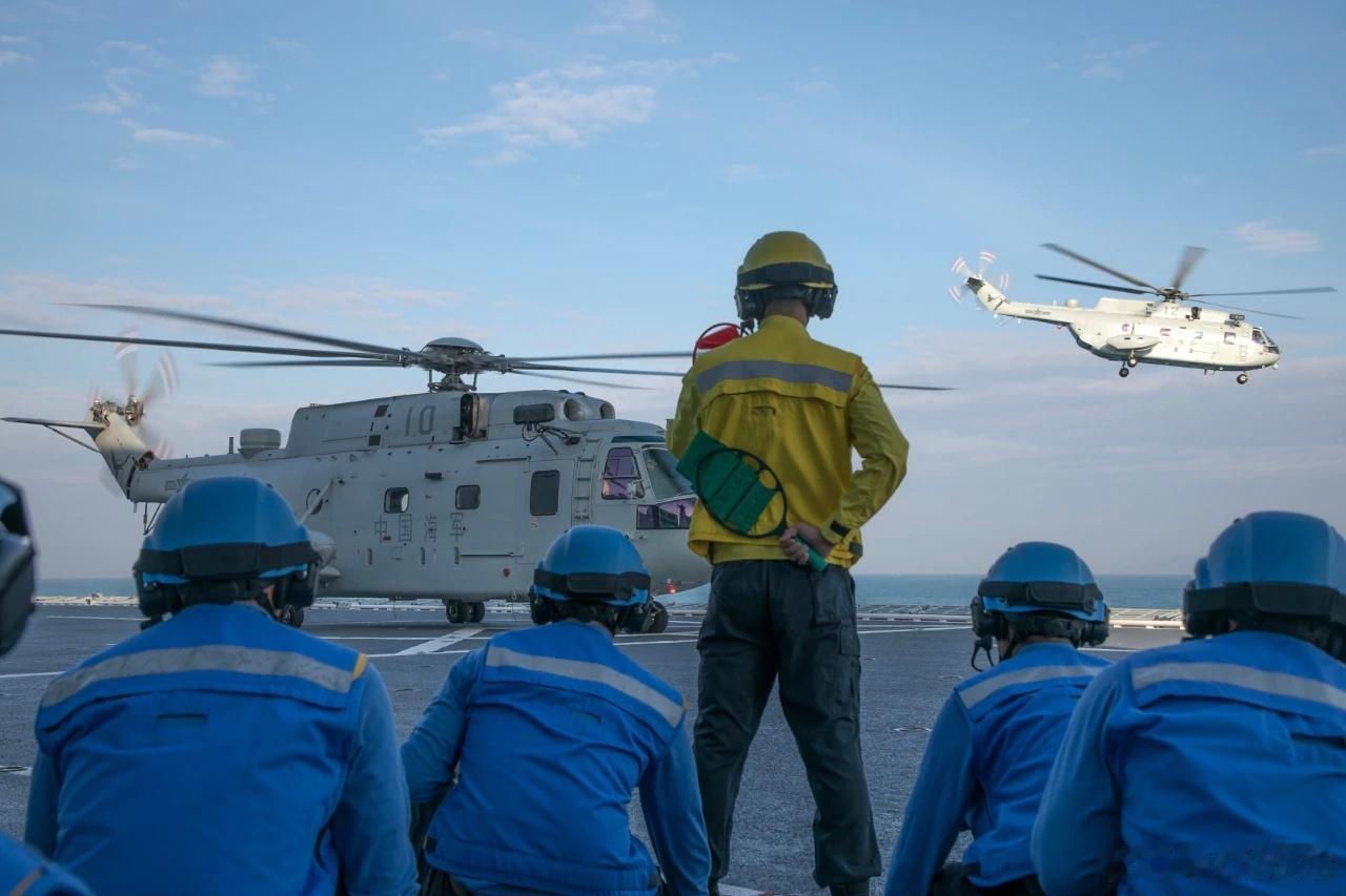 直-18A大型预警直升机在075级两栖攻击舰上进行起降训练,预警直升机可以给整个两栖作战编队提供低空突防预警,这里有10和12编号的两架预警直升机,难道现在075也标配预警直升机了吗?