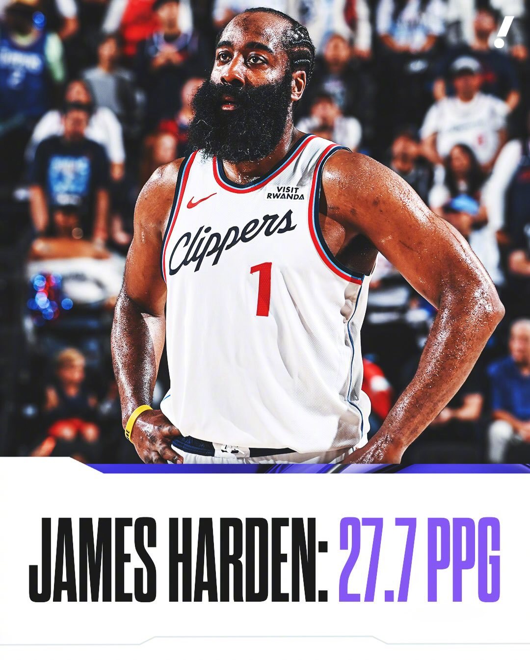 快船5-15,排名西部第14,如果局面不改观,哈登生涯连续17年打进季后赛的纪录