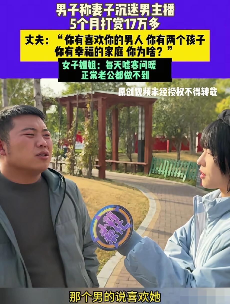 17万打赏换虚情,婚姻里最蠢的事的是错把套路当深情 真的太糊涂了! 郑州已婚女子五个月砸17万打赏男主播,对人家嘘寒问暖送这送那,转头却嫌丈夫不够体贴,忘了自己才是这场婚姻里的失职者。 男人放心把钱交她保管,是实打实的信任和责任,可她偏要沉迷直播间的虚假温柔,殊不知那些刻意的关怀,不过是冲钱来的套路。 法律早有规定,未经配偶同意大额打赏属挥霍共同财产,丈夫有权追回,可就算钱能要回,被伤的感情难修复。 婚姻里的温暖从不是甜言蜜语堆出来的,而是柴米油盐里的坚守,外人的温柔再动人都是镜花水月,唯有身边人为家奔波的真心才靠谱。 总有人分不清套路和深情,你身边见过这种糊涂事吗?