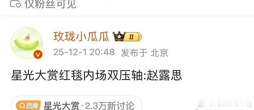 鹅今年星光大赏要真是赵露思压轴…内娱就好玩了……况且出席的很多还都是同批有资源竞争的生花…