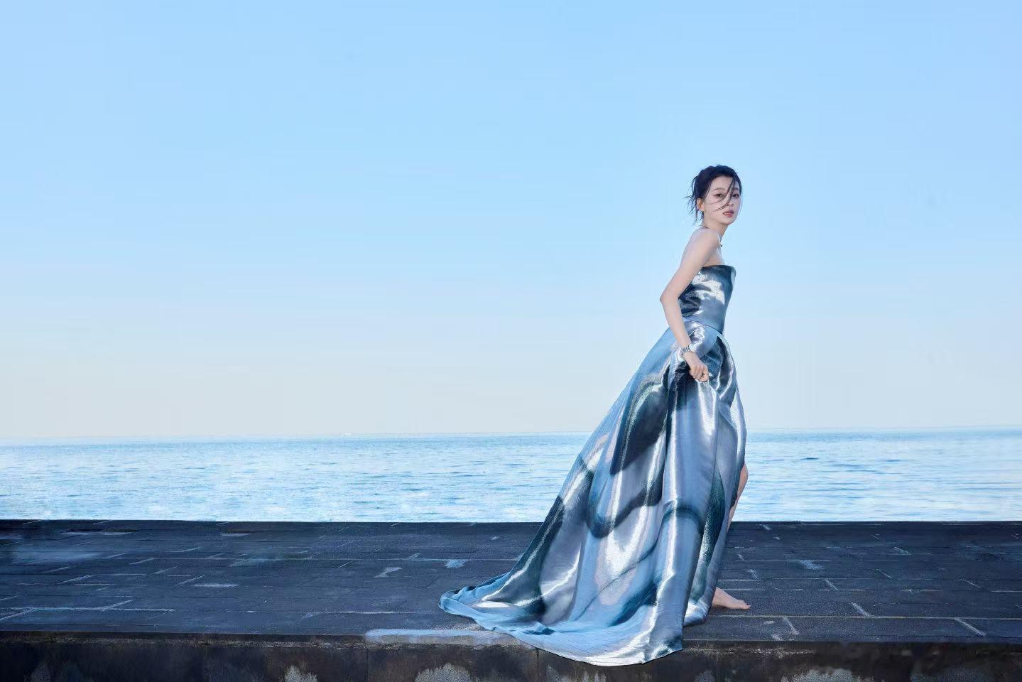 孙怡怎么把海浪穿在身上 谁说海浪只能在大海里看?孙怡的银色缎面长裙就像是把海浪穿在了身上,光泽感与海风完美结合,气质一流!