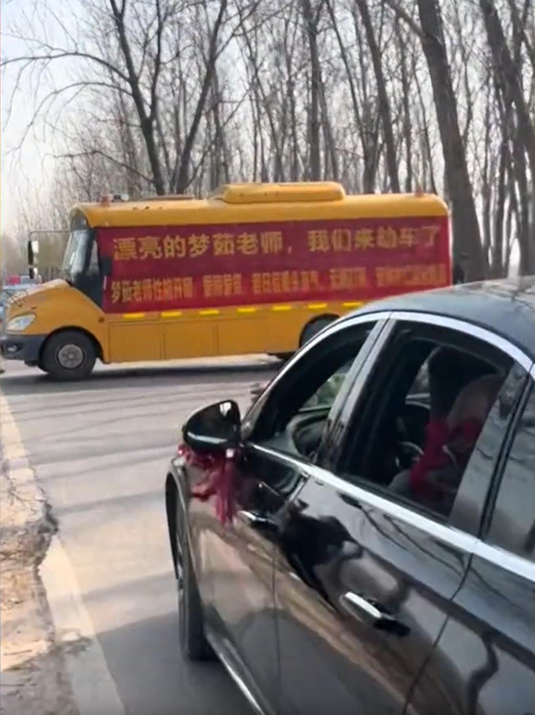 双倍幸福!山东菏泽,一位幼儿园老师结婚出嫁,不料,婚车还没开出多远就被“劫车”了,不过这不是来讨红包,要喜宴的,而是幼儿园们的孩子来集体送祝福,女老师看到这一幕,眼泪唰的流了下来,差点把妆都哭花了 视频中,带队的园长领着几十个小朋友,整整齐齐站在路边。园车前面拉着一条大红横幅,上面清清楚楚写着老师的名字,还有一句简单的祝福。孩子们一个个手里拿着玫瑰花,挨个走到婚车边,踮着脚把花递到老师手里,然后齐刷刷地喊:老师,新婚快乐! 坐在婚车里的新娘先是一愣,接着眼泪就忍不住了。化的妆也顾不上了,眼泪唰唰往下流 后来才知道,这个“拦截计划”,是幼儿园里老师和家长们偷偷准备了两个星期的秘密行动。玫瑰花是家长帮忙准备的,孩子们提前练了好多次怎么送花、怎么喊祝福。唯独结婚的那位老师,从头到尾被蒙在鼓里 有网友说:世上有很多金钱外的幸福,别说是老师了,我都看哭了 确实,这话说得很实在。婚礼结束后可能没人再提这事,但对这位老师来说,这一天的意义会一直存在。孩子们的祝福会成为她工作多年后回想起来仍会笑的那段记忆 我们平时总说教育是什么,老师是什么。其实很多时候,就是这些细微处的连接。老师每天照顾孩子,教他们认字唱歌,陪他们做游戏。孩子或许说不清大道理,但他们心里知道谁对他们好 这场特别的“送嫁”,其实也是孩子们在用自己笨拙却真诚的方式,去回馈那份日常的陪伴。对那位老师来说,这大概是她收到过最特别、最厚重的一份结婚礼物——不是金银首饰,而是一群孩子最干净的心意