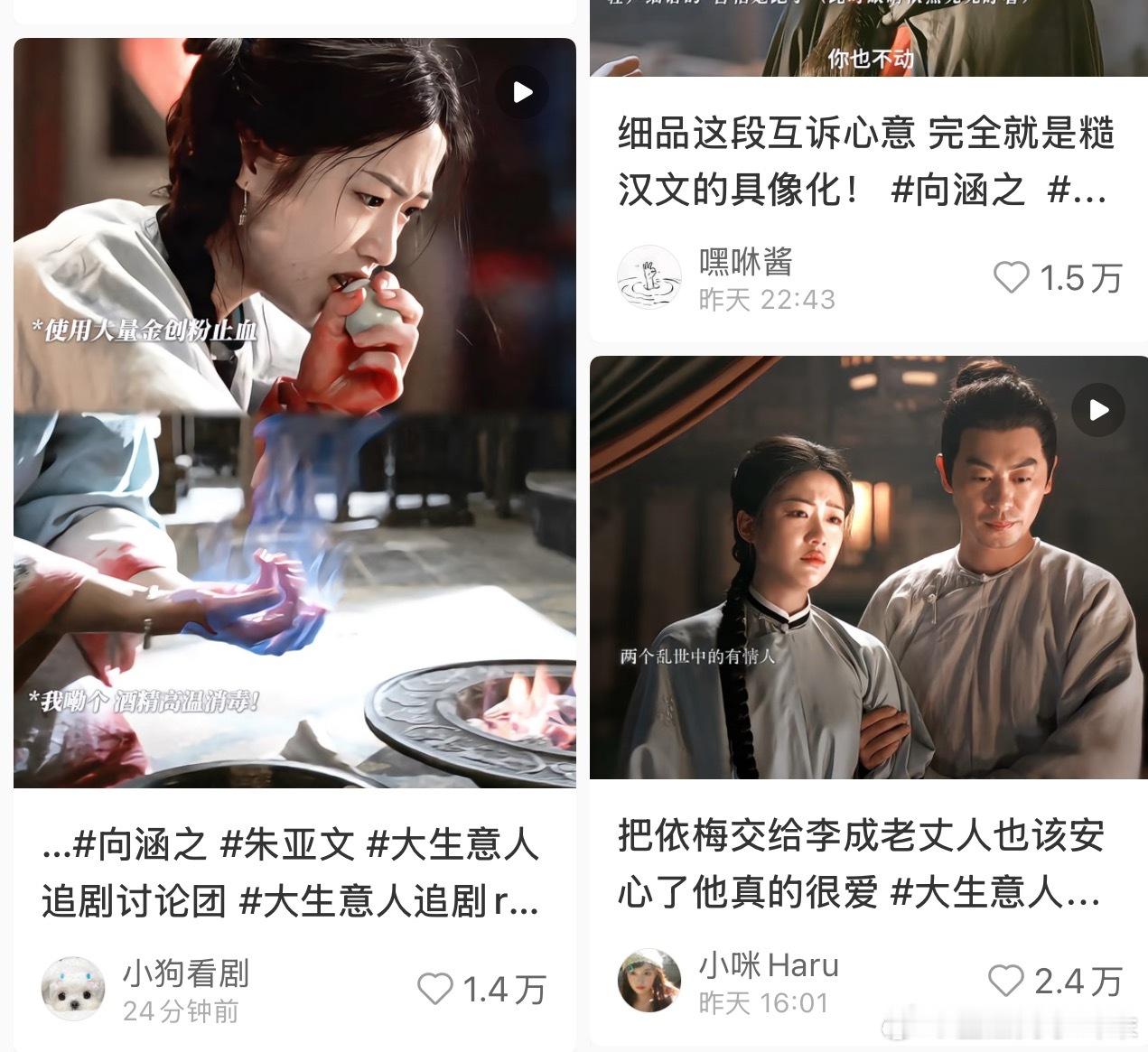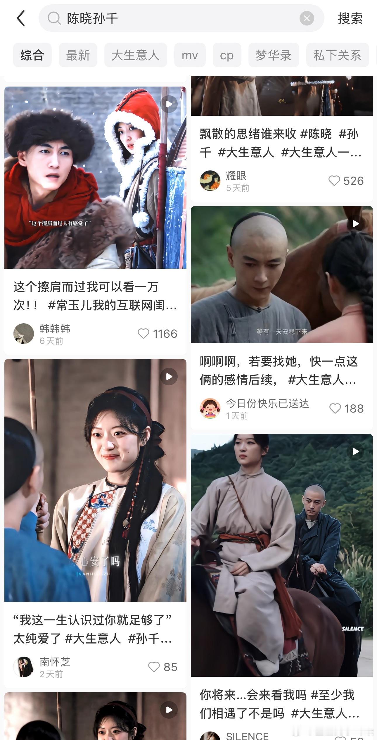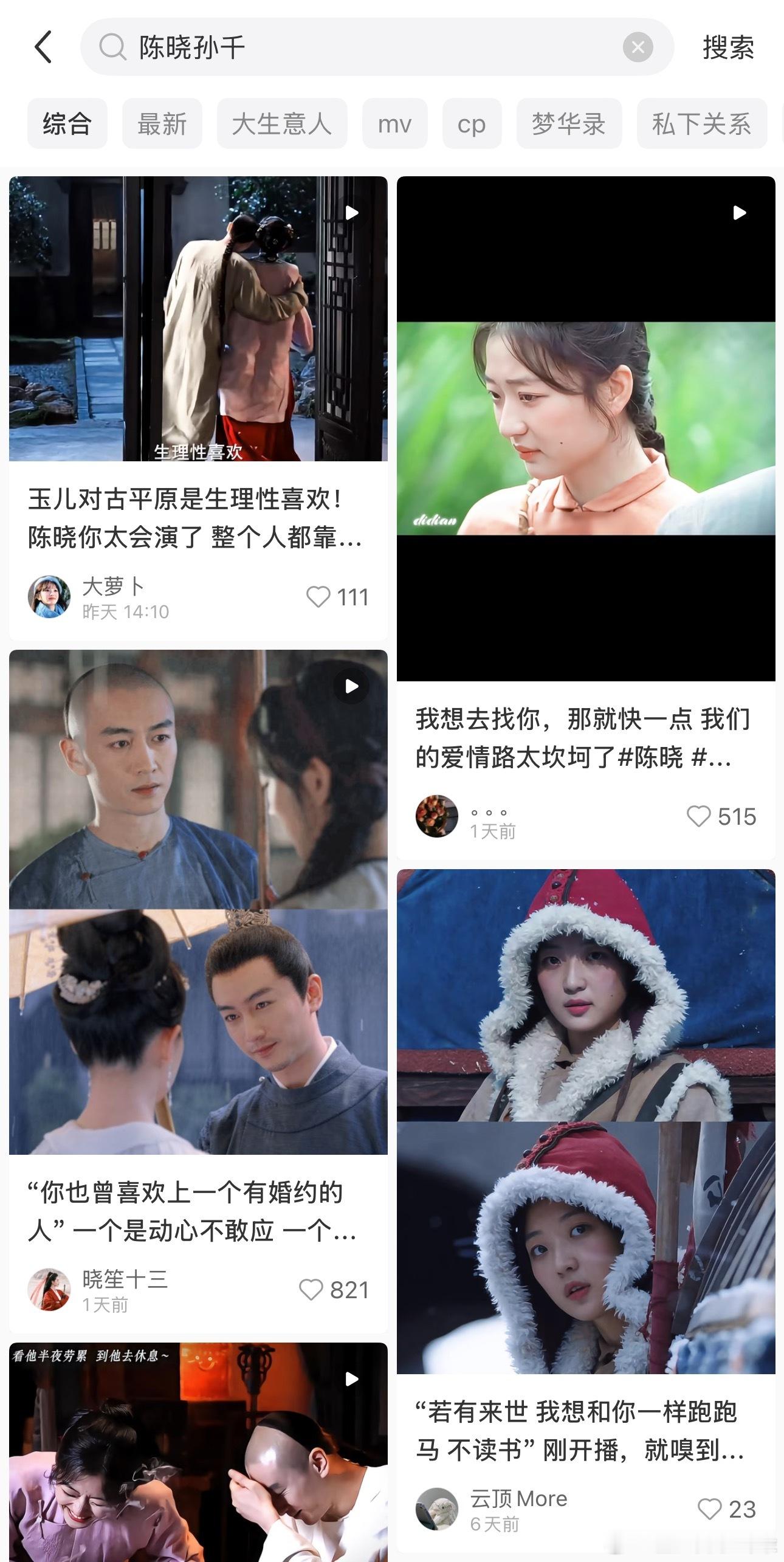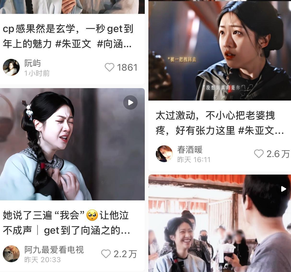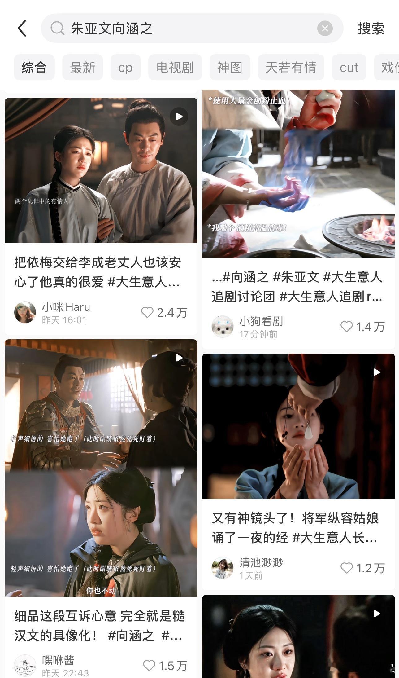 大生意人正片白依梅和李成真不好嗑,但是切片真的很有CP感。粉丝别说都是营销推流的原因,也有不少陈晓孙千的双人剪辑,但是数据都很一般。朱亚文向涵之的双人剪辑上万的点赞层出不穷。