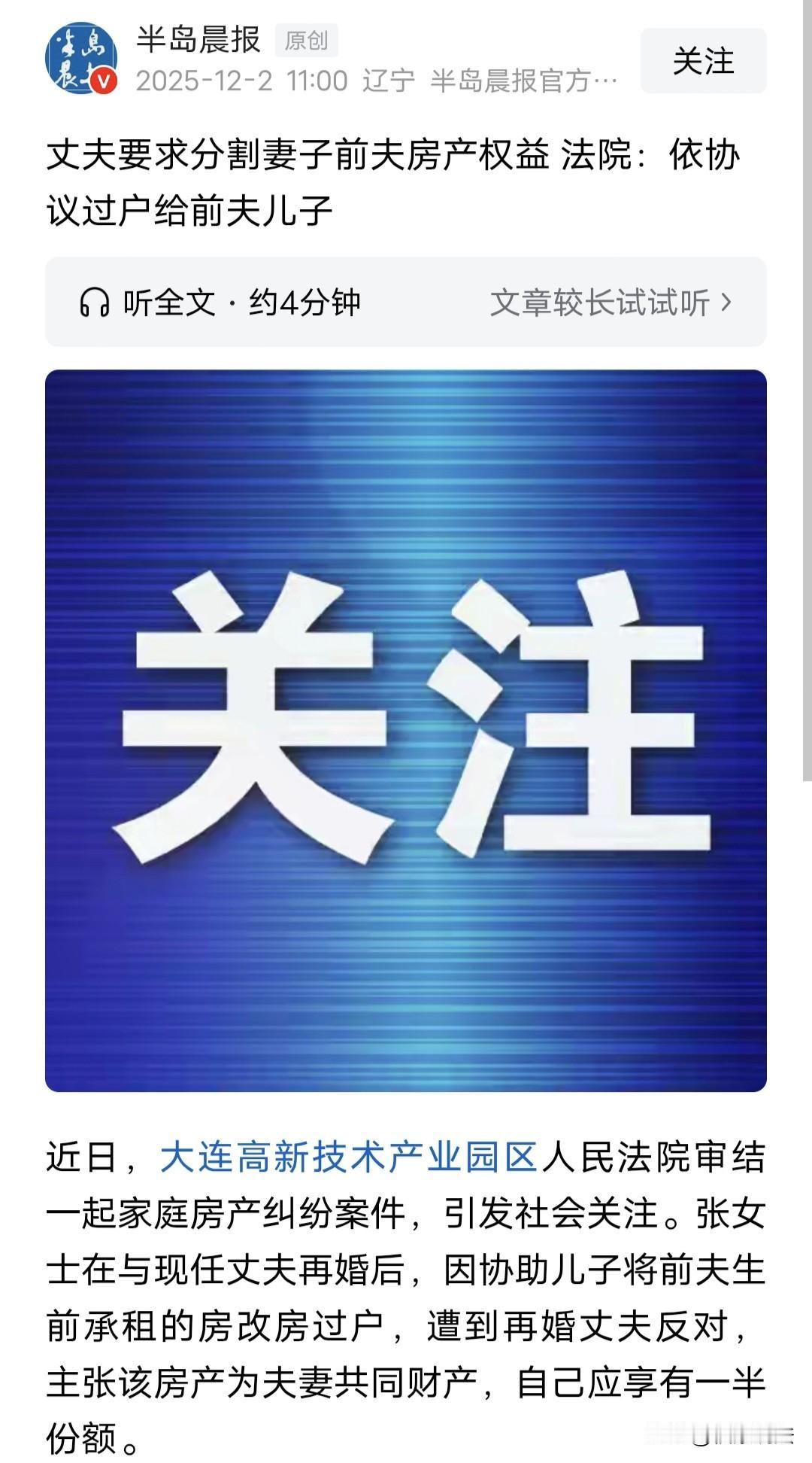 “软饭硬吃!”辽宁大连,男子和一丧偶女子结婚后,住在女子婚前买的房里,而女子的亡夫留下一套二居室给儿子住着,多年后,儿子要给二居室办理产权登记,但需要先办在母亲名下,用母亲工龄购买,之后,再以“亲属过户”方式把房产登记在儿子名下,儿子为了缓和与继父的关系,自愿放弃母亲名下其他房产继承权,没想到,等产权办好准备过户时,继父坚决反对,他说作为女子的丈夫,房子产权应该有自己一半!儿子无奈将母亲和继父告上法院,要求二人配合过户。法院这样判了。 2024年,小明找到母亲张女士说,产权单位通知他,父亲留下的那套二居室可以办理产权登记了。 张女士替儿子高兴,这是好事啊。 小明犹豫了一会和母亲说:因为产权单位说,得先把产权办到母亲张女士名下,要是用母亲的工龄购买的话,价格能便宜不少呢。等产权登记到母亲名下后,他再以“亲属之间过户”的方式,把产权转给自己。 小明和母亲商量,如果母亲同意,购买产权的钱由他来出。 不过,小明考虑事情也是很周到的,为了不让母亲夹在自己和继父中间为难,他说他愿意放弃母亲张女士名下其他房屋的继承权。 张女士觉得儿子小明这个办法挺不错的,就同意了。 小明为什么将母亲名下其他房产继承权放弃了呢? 这事得从小明的母亲张女士的两段婚姻说起…… 张女士和大明结婚后,住在单位分得一居室小房子里,两人只有一个儿子小明,这套房子的承租人是大明。 1992年,这套小房子动迁了,他们一家三口被安置到一套面积更大的二居室居住。 本来张女士一家三口的幸福生活才刚刚开始,可惜的是,大明生病去世了,留下了张女士和小明。 然而,张女士并没有放弃对爱情的追求,后来,她和一个叫李会的男子再婚了,不过,小明和这个继父处不来。 所以,张女士和李会婚后,就搬到张女士婚前在凌水附近买的一套房子里生活了。 而小明则自己住在这套二居室里生活。 双方有了距离,生活中大方面还过得去,可就在2024年,小明和母亲商量给二居室办产权和过户的事之后,继父李会的态度让他憋了一肚子的气。 等小明和母亲把二居室的产权办好后,准备按照“亲属之间过户”的方式登记到小明名下时,万万没想到意外来了——继父李会坚决不同意。 李会振振有词,张女士和他结婚后,把前夫大明名下这套使用权房屋的产权买了下来,并登记在张女士一个人名下。 那么,自己作为张女士的现任合法丈夫,这套二居室的产权自然有自己一半,张女士就不能一个人说了算,单独处分这套房子。 小明是真没想到,继父李会居然会这么恬不知耻,自己都已经放弃母亲名下其他房产继承权了,这个继父竟然还要分走自己的一半房产,简直岂有其理。 再说这套二居室是父亲大明留下的,是自己一直居住的房子,他一个大老爷们还妄想着占有妻子前夫的房产,真是不要脸。 可小明也是投鼠忌器啊,李会毕竟是母亲的再婚丈夫,跟他继续纠缠也会增加家庭矛盾。 无奈之下,小明只好把母亲张女士、继父李会起诉到法院,要求二人配合将二居室过户到自己名下。 不过,张女士也找了两名律师,并在法庭上说了自己的想法,她同意儿子的全部诉讼请求。 张女士说:前夫大明去世后,大明承租的单位公房一直是儿子小明在住着,小明是有居住权的,而且,办理产权到自己名下,也都是为了节省费用,而相关费用都是小明出的。 但是,继父李会却反对,他说这套二居室是他和张女士婚姻存续期间通过房改购买的,应该属于夫妻共同财产,所以,自己得分一半。 小明没办法,只好等着法院判决。 法院审理后发现,小明和母亲张女士在购买二居室房屋产权的时候,已经达成了一份家庭财产分割协议。 协议明确写着:小明生父大明承租的二居室房屋归小明所有,由小明母亲张女士通过房改手续购买产权,购房费用由小明承担,之后以“亲属过户”方式把房子过户到小明名下;小明则放弃对登记在母亲名下其他住房的继承权。 另外,在2024年5月6号,该二居室房屋按照协议,以张女士名义通过房改购买得到所有权,并登记她名下,小明则出了购房款和税费。 那么,继父李会说这套二居室是他和张女士的夫妻共同财产,合理吗? 房屋虽登记在张女士名下,但购房款及税费均由小明承担,张女士仅是代为办理手续,实际产权应归出资人小明所有。 另外,张女士与小明已明确约定房屋归小明所有,李会并非协议签订方,无权单方主张产权。 就算李会认为房屋在婚姻关系存续期间登记在张女士名下,但因存在书面协议约定归小明所有,李会无权主张共同财产。 《民法典》第209条规定:动产物权的设立、变更、转让和消灭,经依法登记,发生效力;未经登记,不发生效力,但是法律另有规定的除外。 法院认定小明和母亲签的家庭财产分割协议合法有效。 最终,法院判决:张女士、李会二人在判决生效之日起15日内,配合小明办理房屋不动产过户手续,将房屋登记在小明名下。